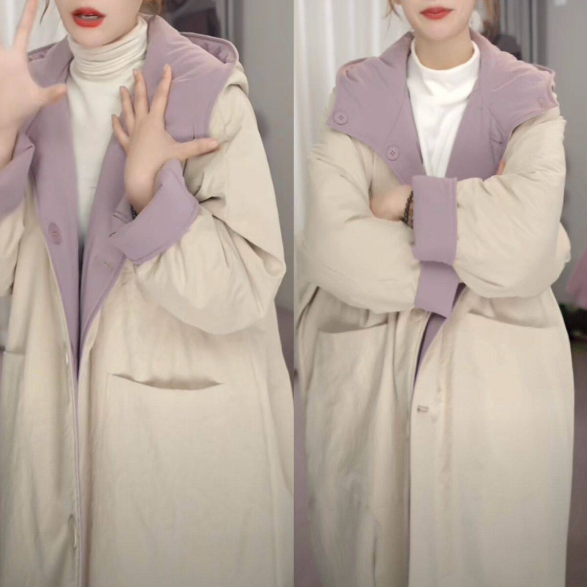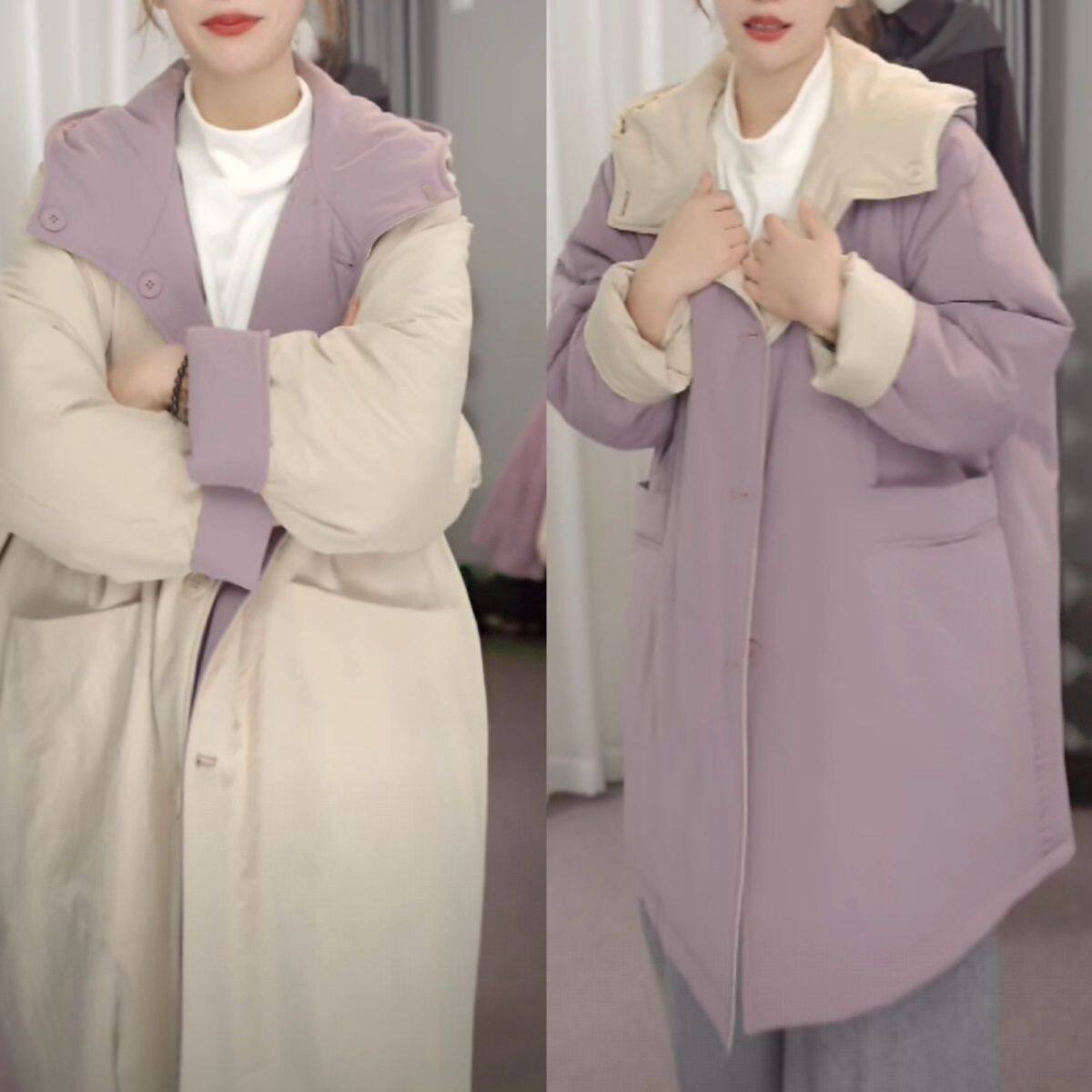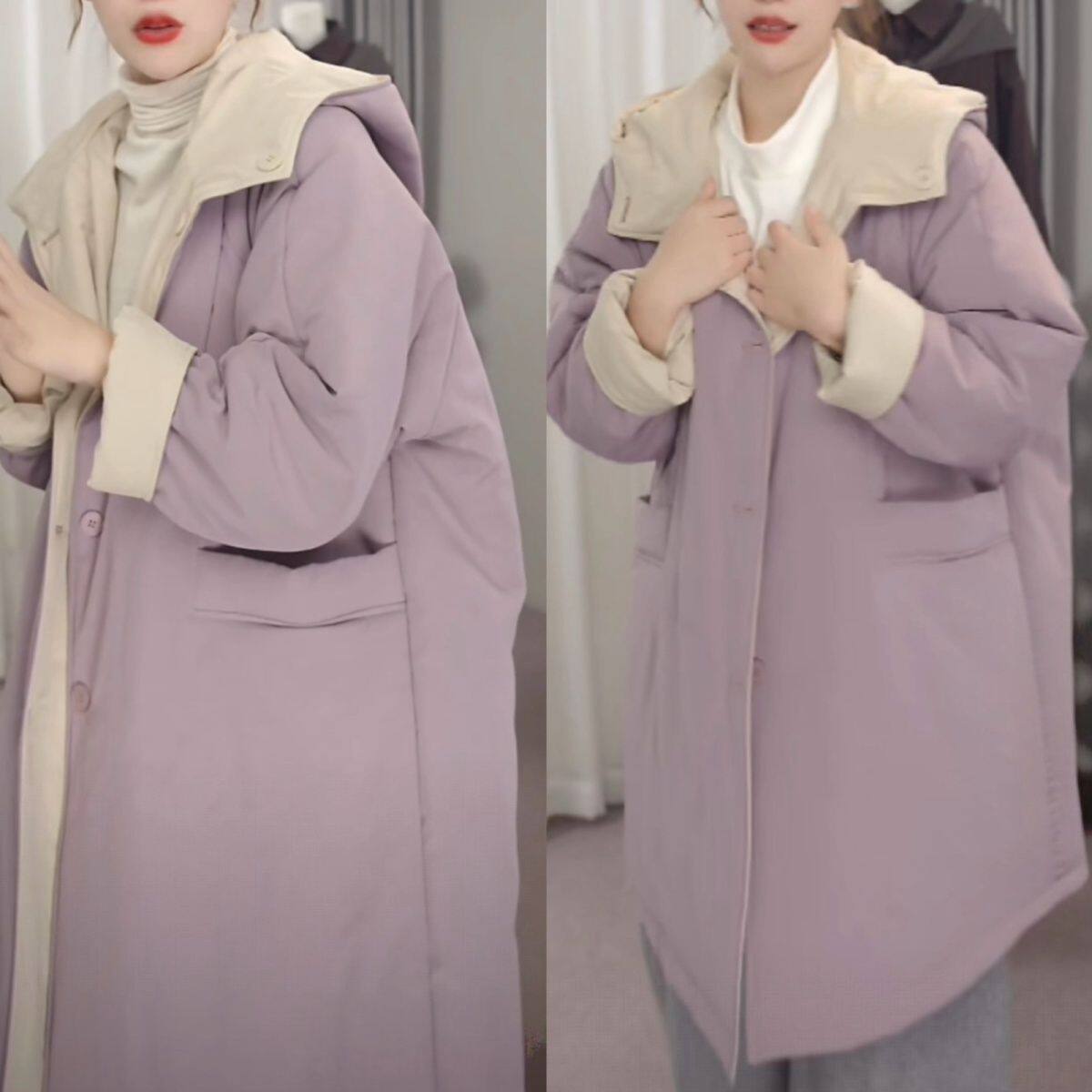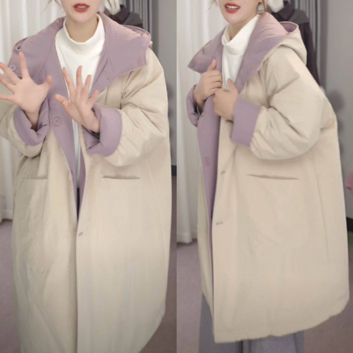 双面穿超好看棉服女款2026新款冬季保暖夹棉宽松外套女棉袄香芋紫