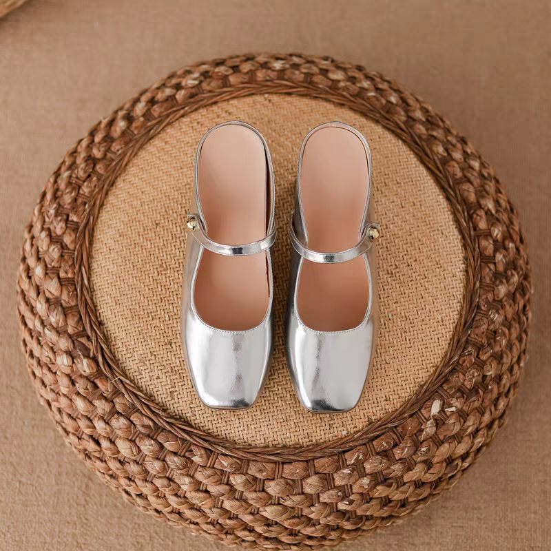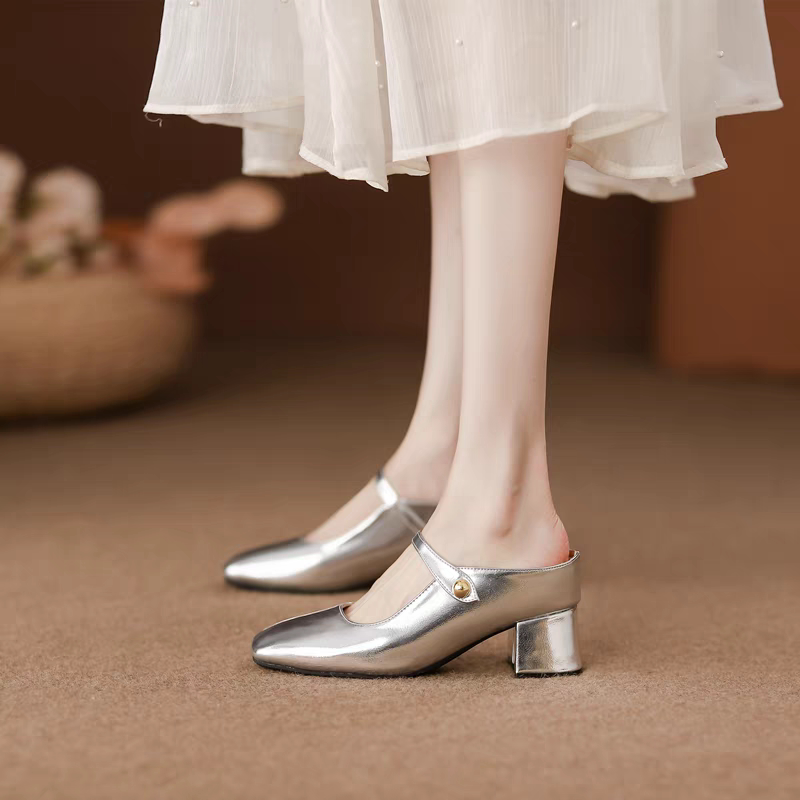 小个子内增高包头半拖鞋女夏天外穿高跟气质配裙子银色玛丽珍单鞋