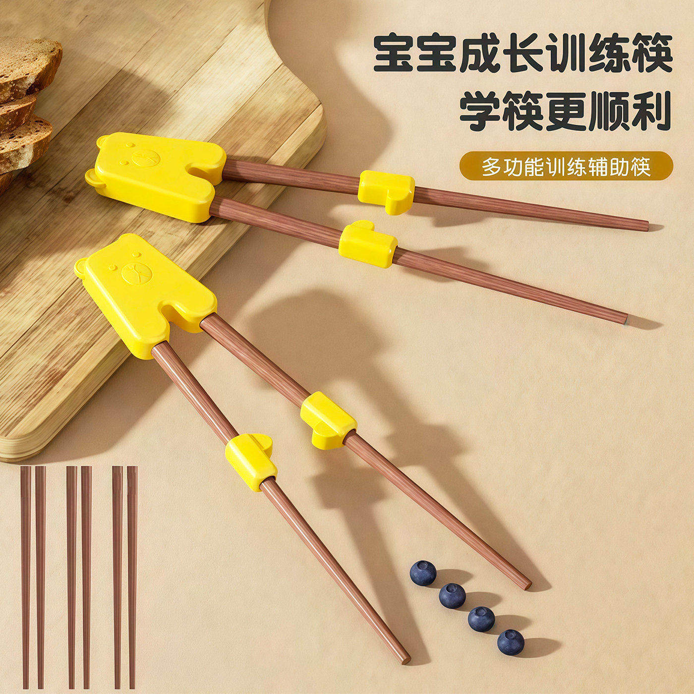 儿童筷子训练筷3岁6岁宝宝家用木质辅助器无刺防滑专用硅胶学习筷