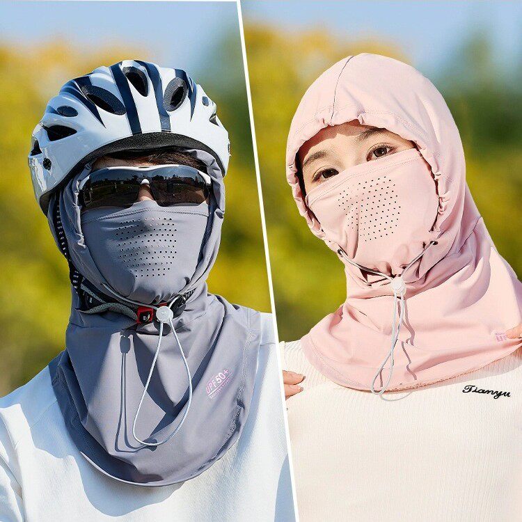 男士夏季防晒面罩户外骑行护颈遮阳透气防尘口罩帽骑车游玩薄款