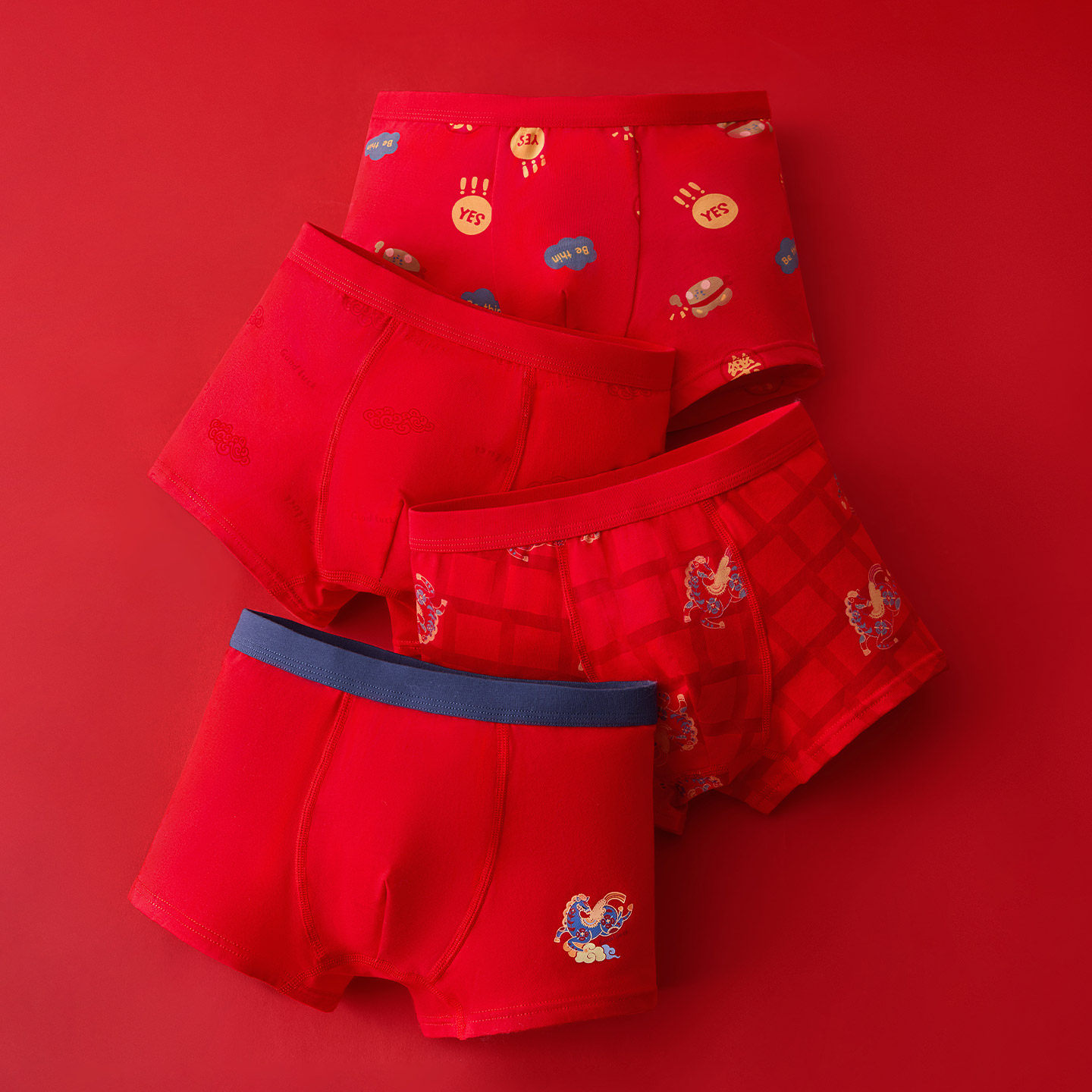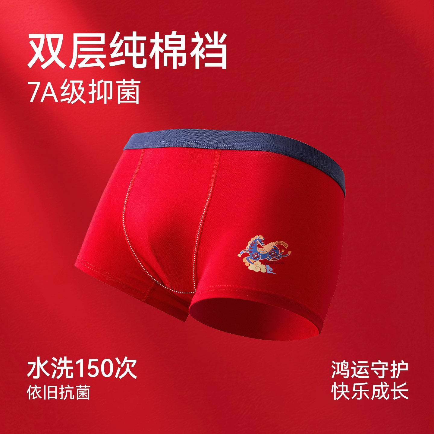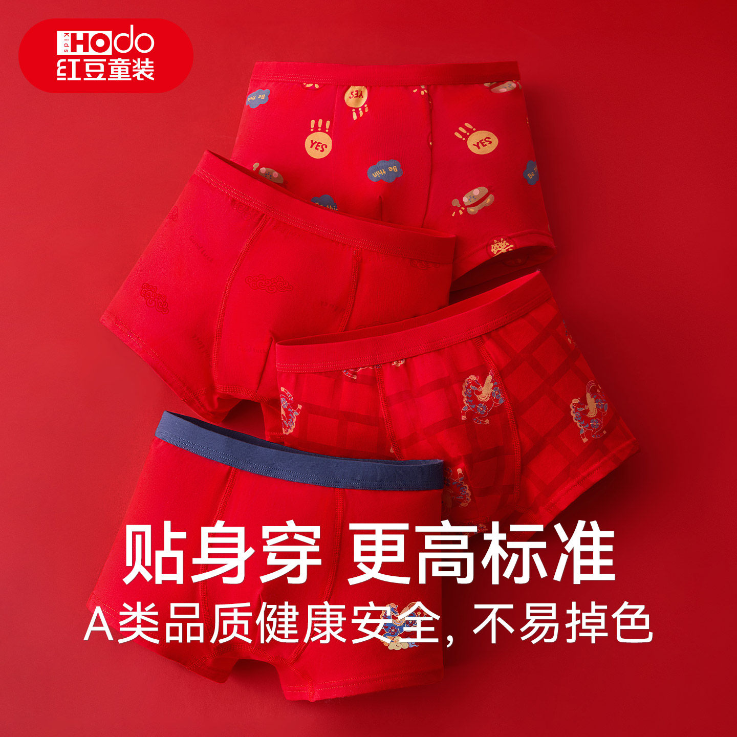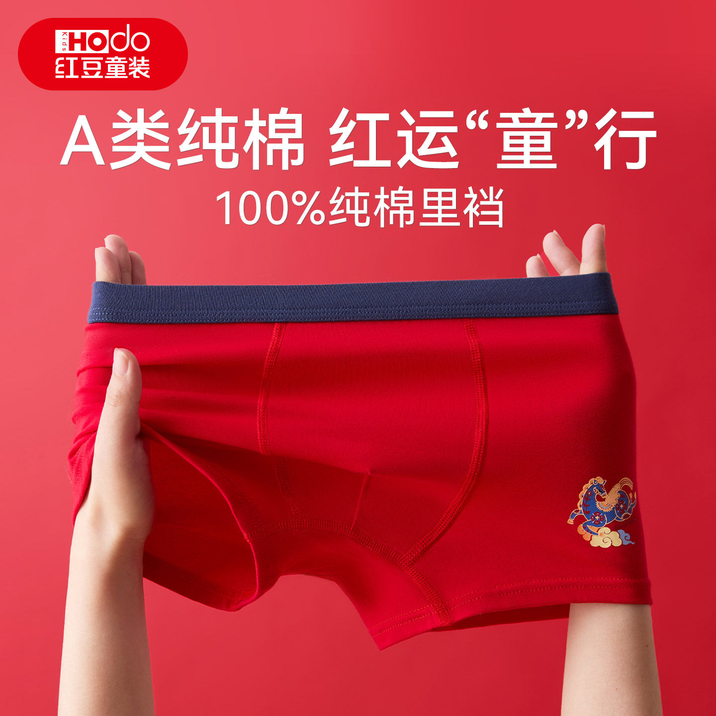红豆儿童本命年红色内裤马年男女童新年中大童平角裤短裤抗菌