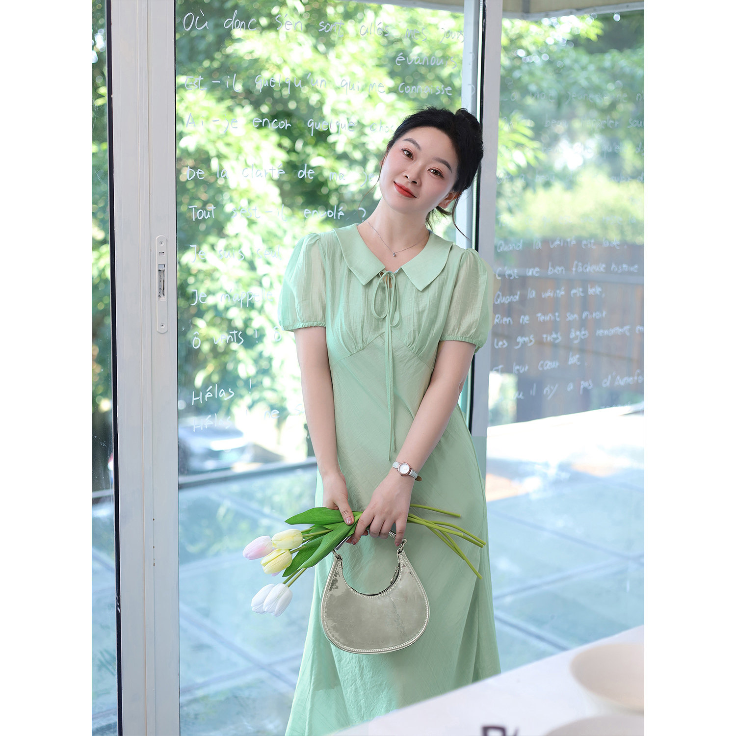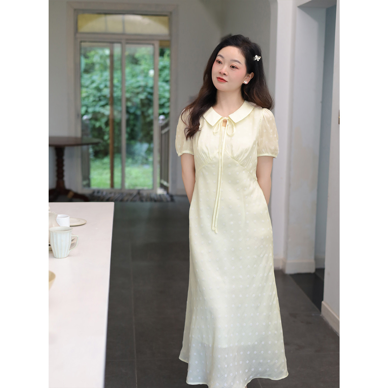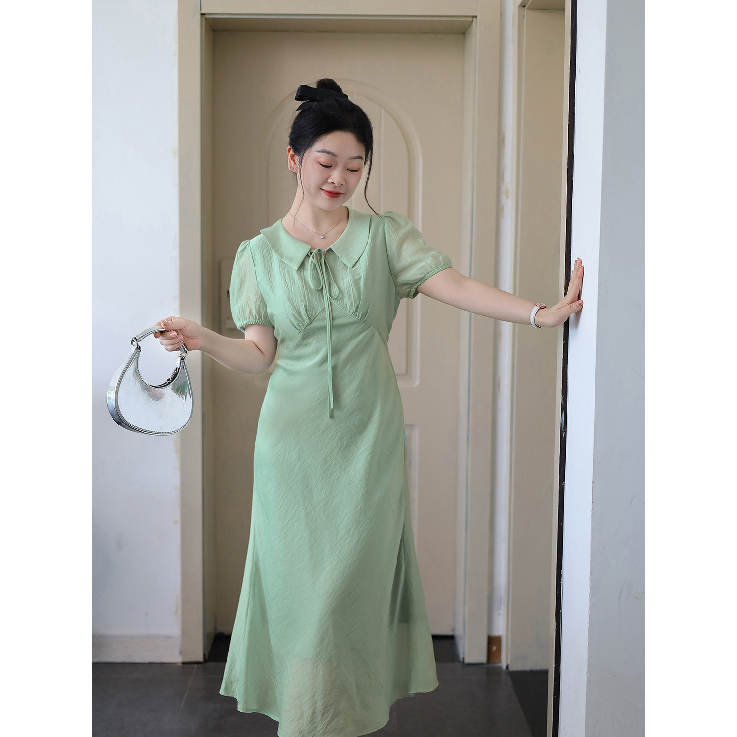 大码百分百女装夏微胖mm【鱼尾连衣裙】显瘦轻薄收腰娃娃领连衣裙