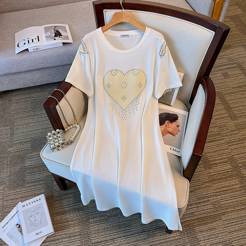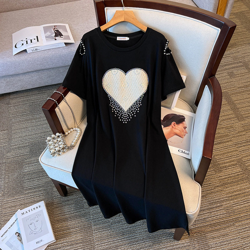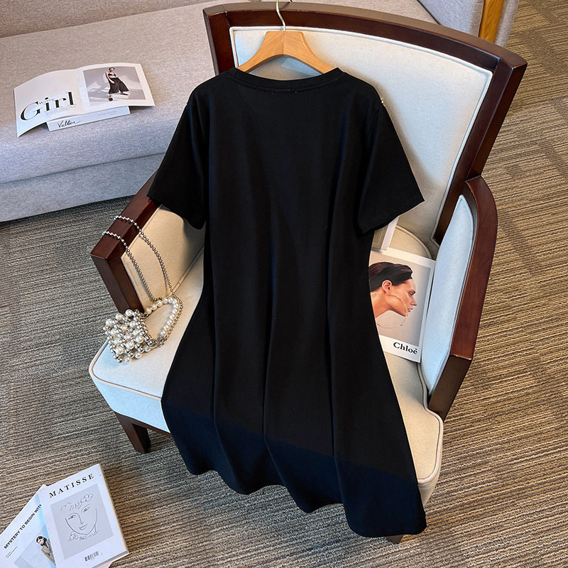 特大码胖mm连衣裙遮肚宽松200斤胖人夏季巨显瘦减龄气质开叉T恤裙