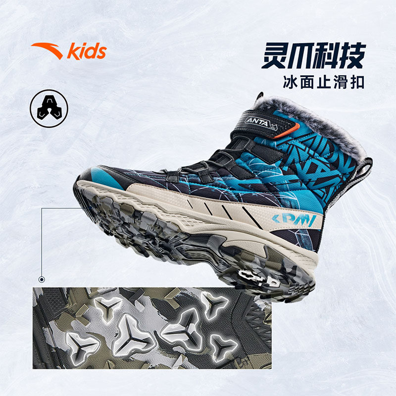 安踏儿童冬鞋男童加绒加厚东北大棉棉鞋大童雪地靴子防滑保暖童鞋