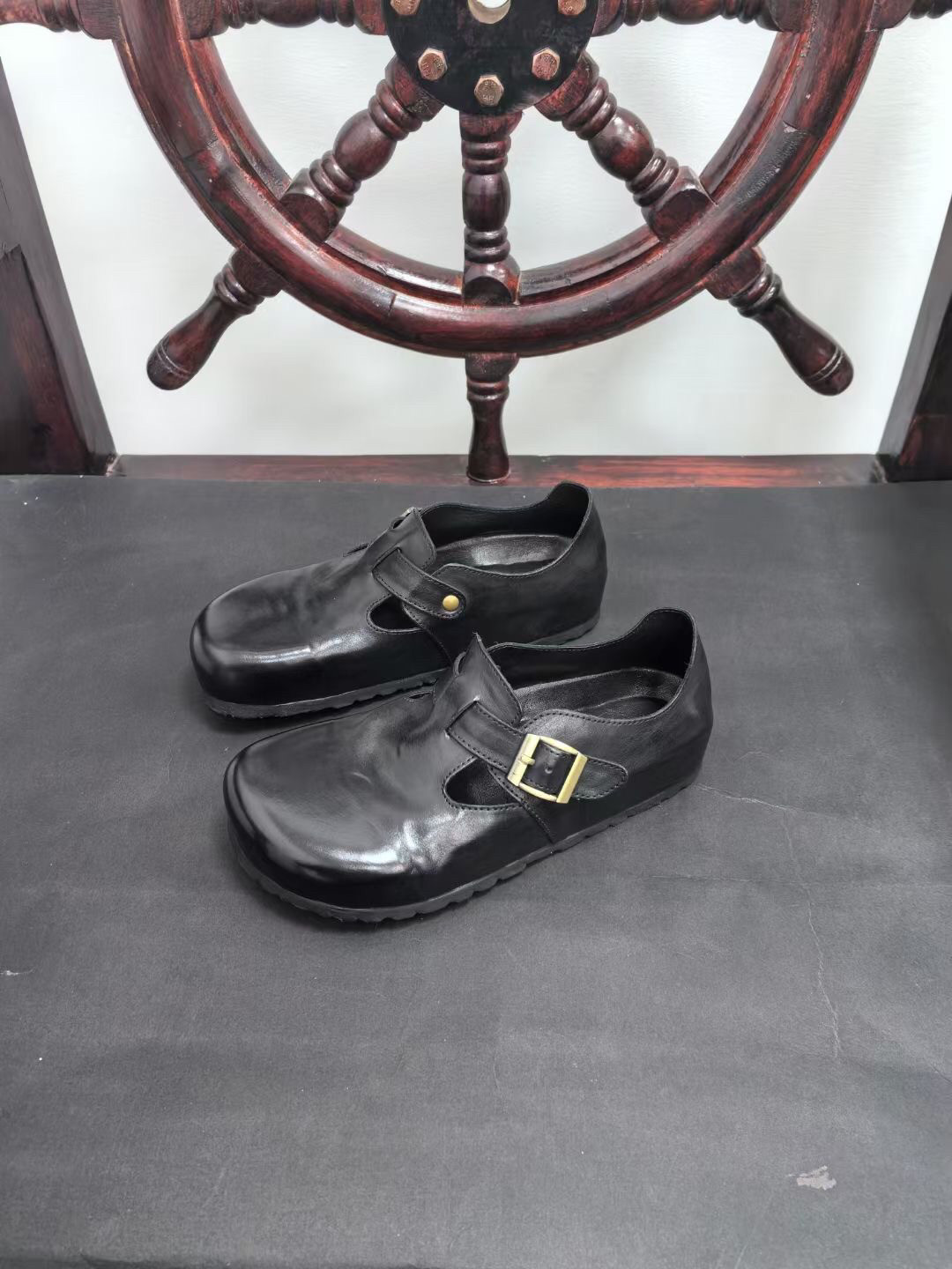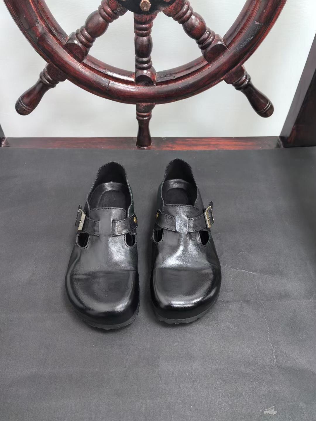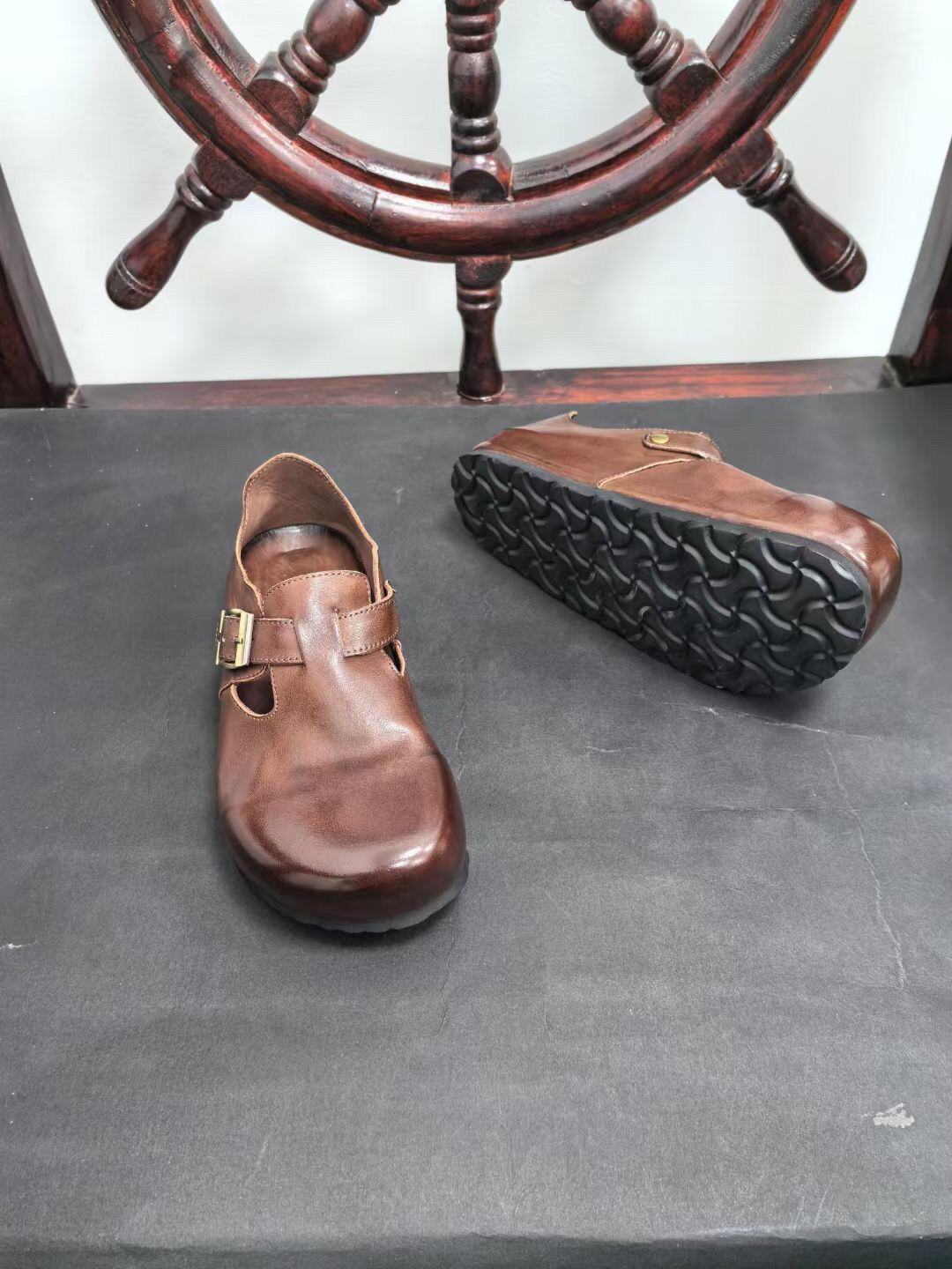 水洗马皮勃肯鞋厚底乐福鞋真皮舒适复古平底百搭懒人一脚蹬单鞋女