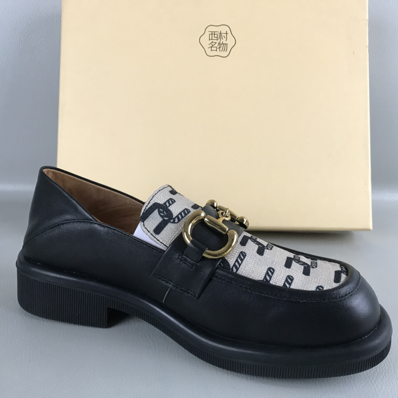 正品西村名物女鞋断码撤柜捡漏春夏一脚蹬厚底乐福鞋真皮时尚单鞋