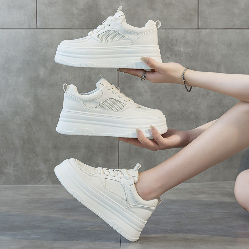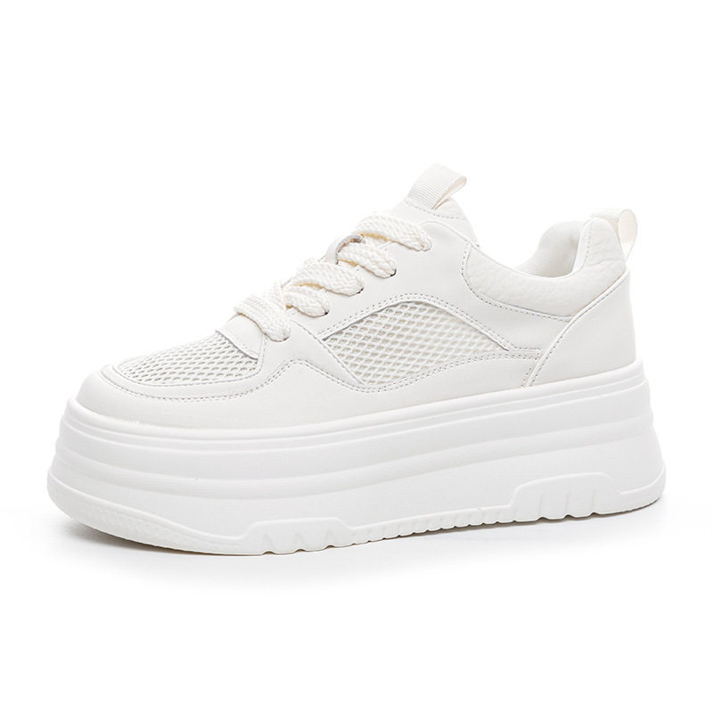 夏季女鞋真皮加网面透气不闷脚厚底小白鞋软底轻便不磨脚防滑单鞋