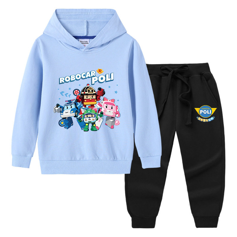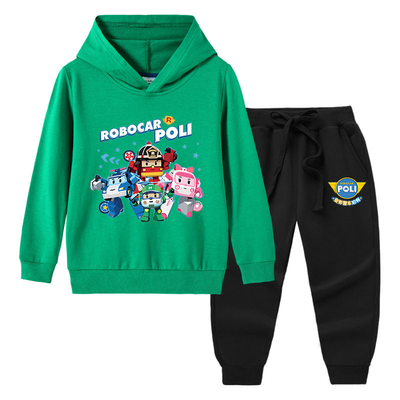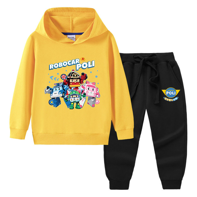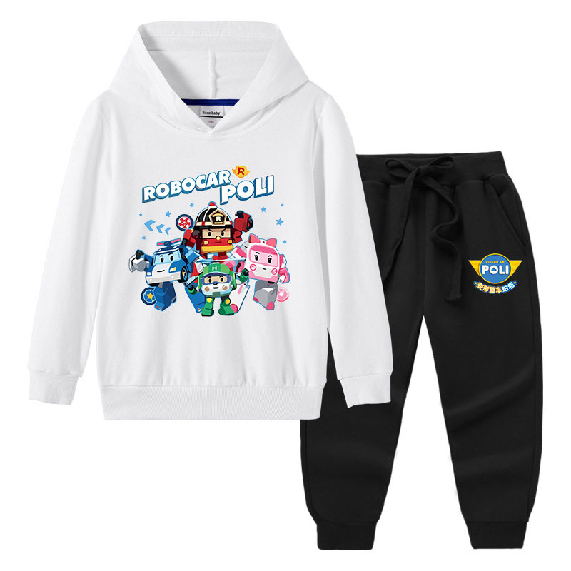 变形警车衣服儿童套装春秋薄款长袖卫衣连帽衫男童卡通两件套春装