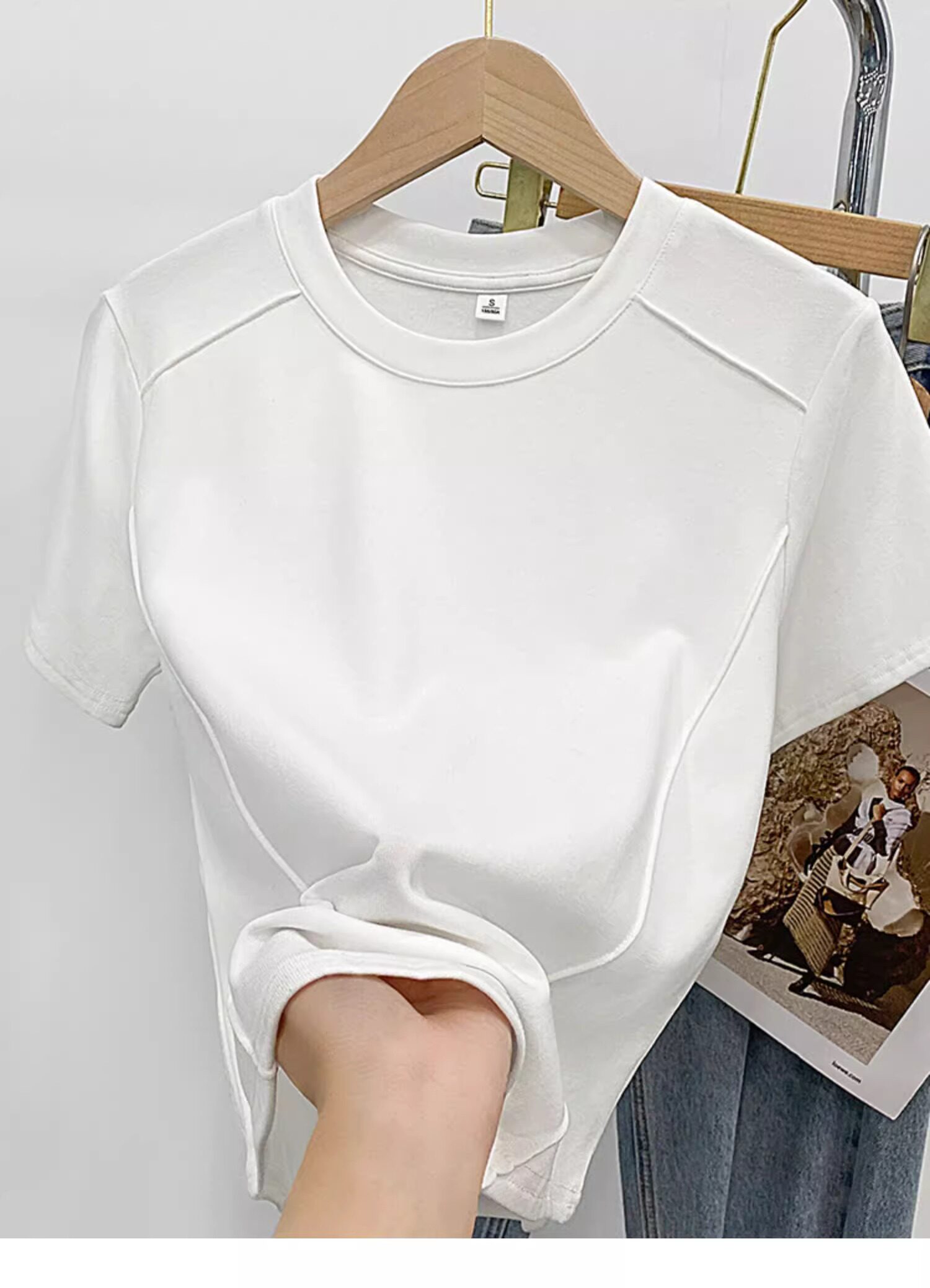 女童纯棉短袖t恤夏装2026新款正肩显瘦鱼骨圆领夏季儿童短款上衣