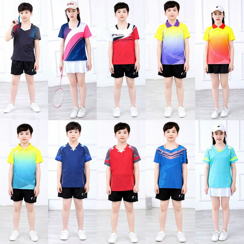 新品儿童装羽毛球服套装短袖T恤比赛服孩子小学生衣裤修身乒乓球