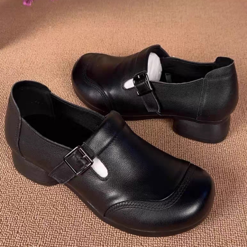 品牌真皮厚底单鞋女2026春季新款软皮软底小皮鞋防滑一脚蹬妈妈鞋