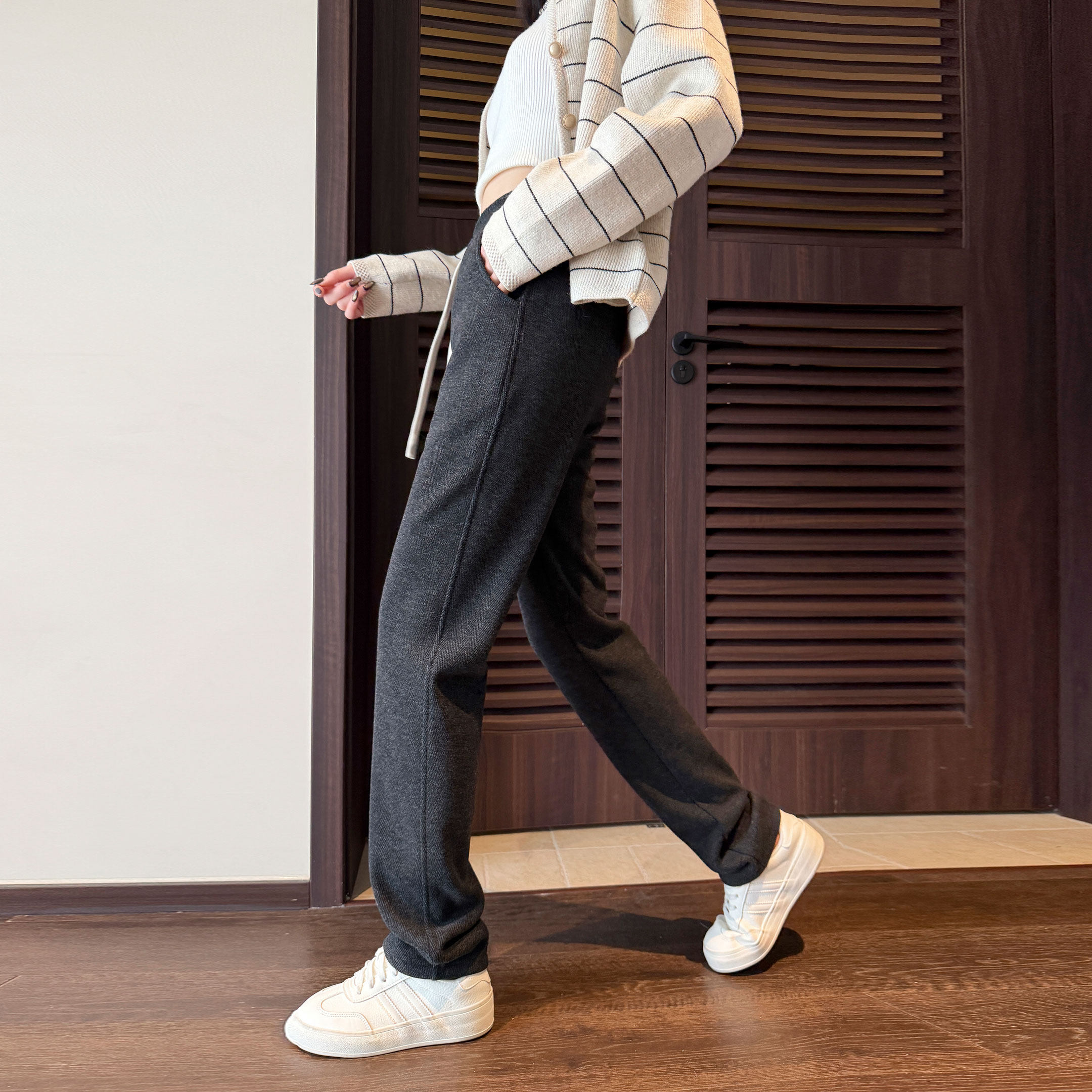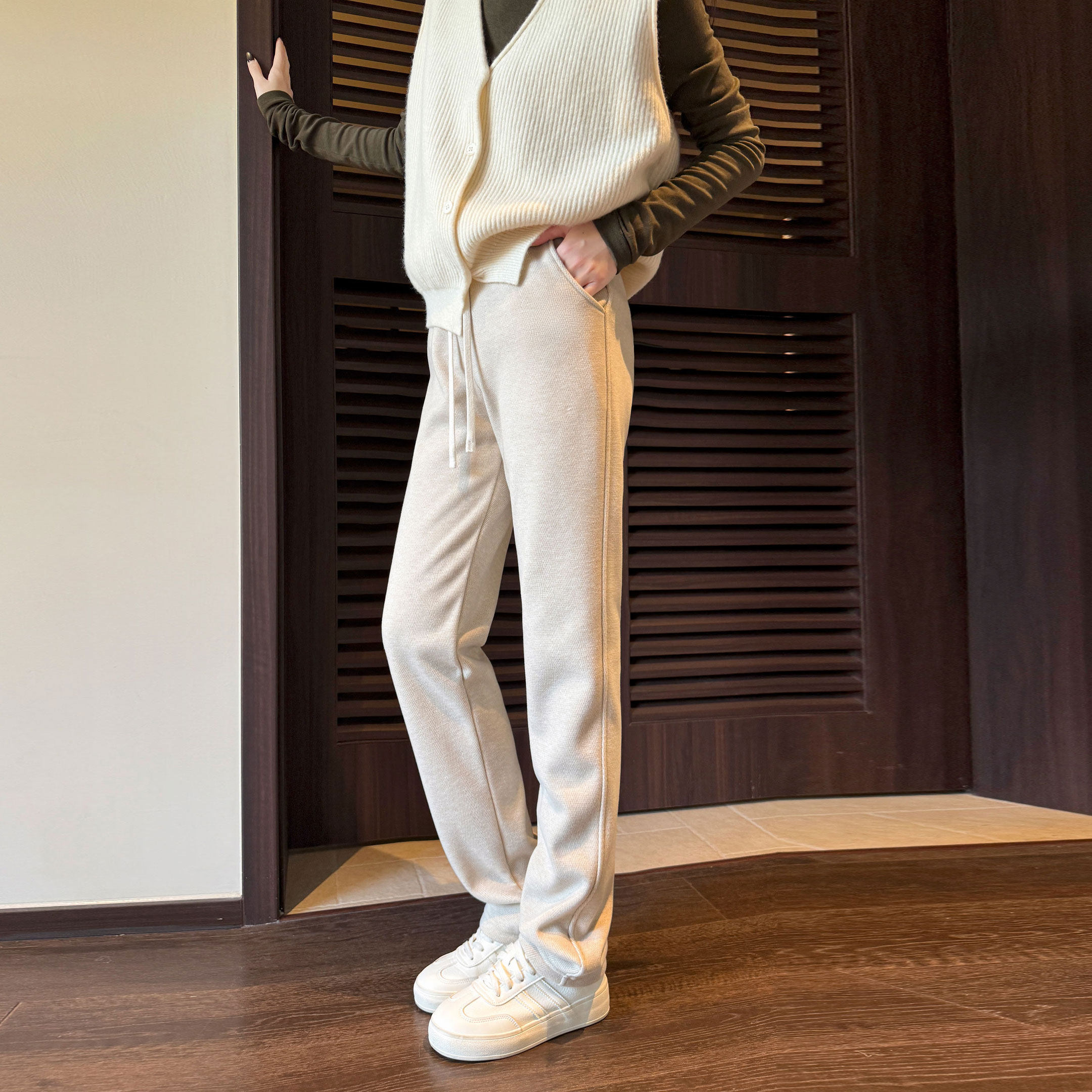 青少年初中高中学生女孩羊毛裤子春秋仿羊绒小脚直筒运动休闲卫裤