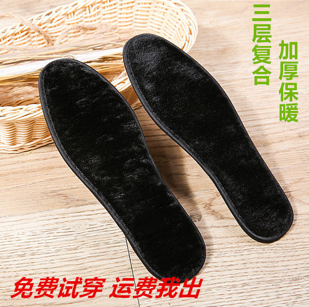 黑色棉冬季加绒加厚防寒防臭男士吸汗透气保暖鞋垫女仿羊毛竹炭鞋