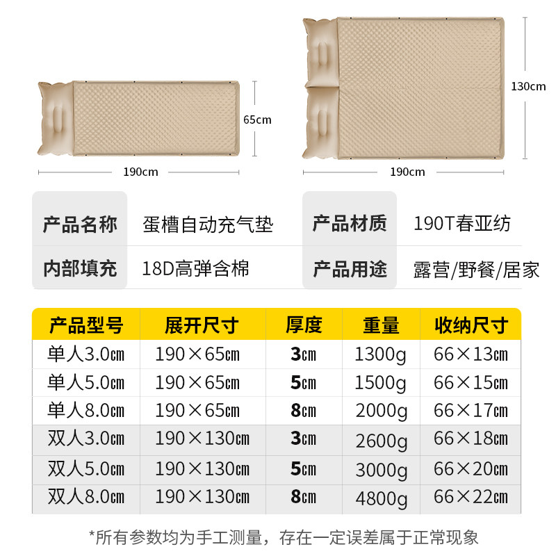 自动充气床垫户外露营便携气垫床家用打地铺睡垫野营防潮帐篷地垫