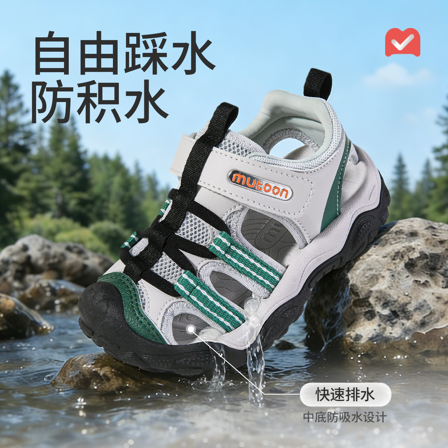 牧童儿童凉鞋男童2026夏季新款户外运动涉水鞋透气网面女童沙滩鞋