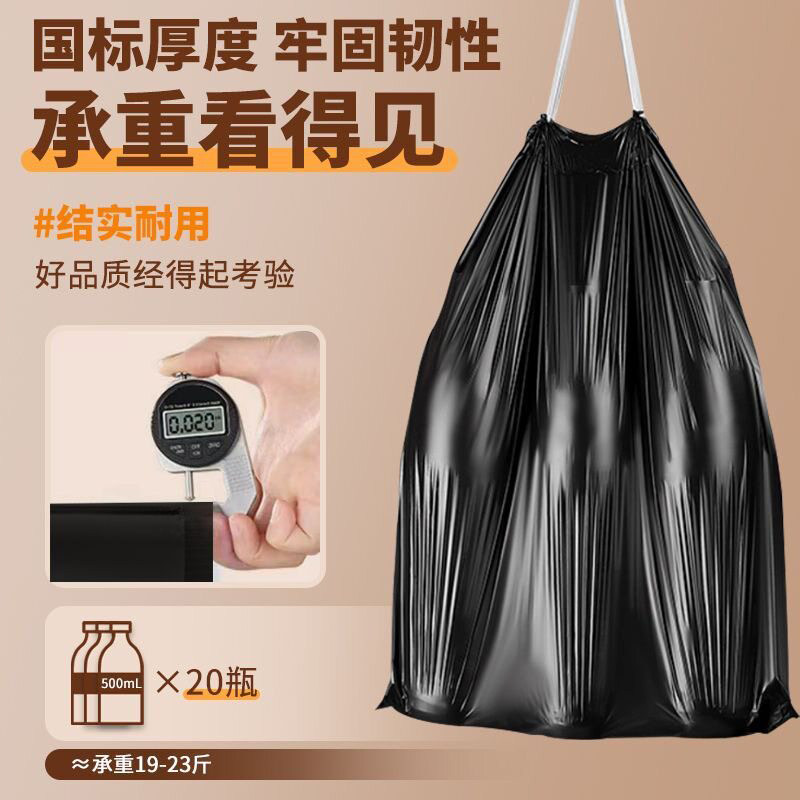 免撕抽绳垃圾袋家用加厚手提式黑色大号厨房自动实惠装塑料袋特厚
