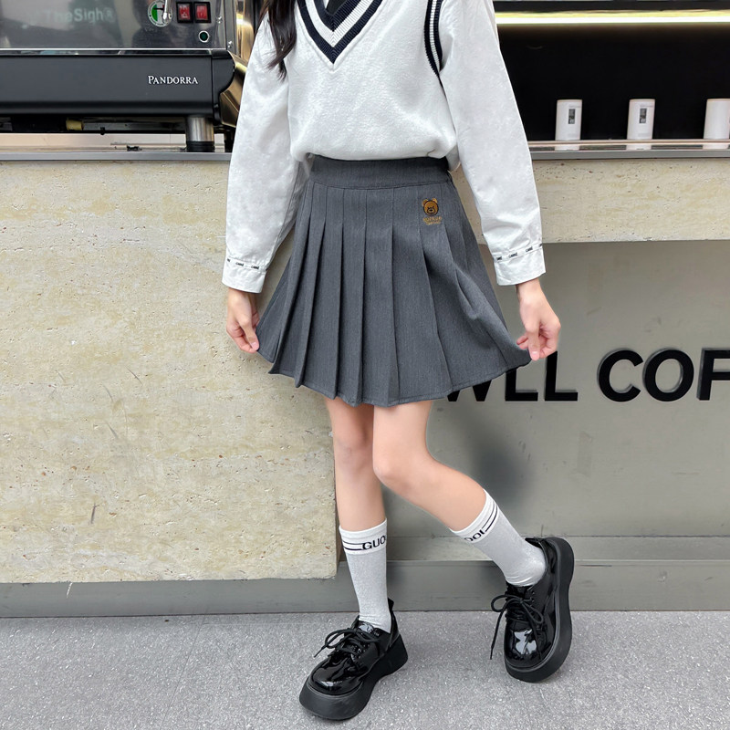 女童洋气半身裙春秋款2026新款韩版中大童学院风百褶短裙女孩裙子