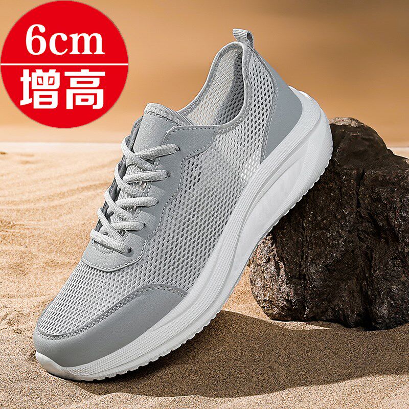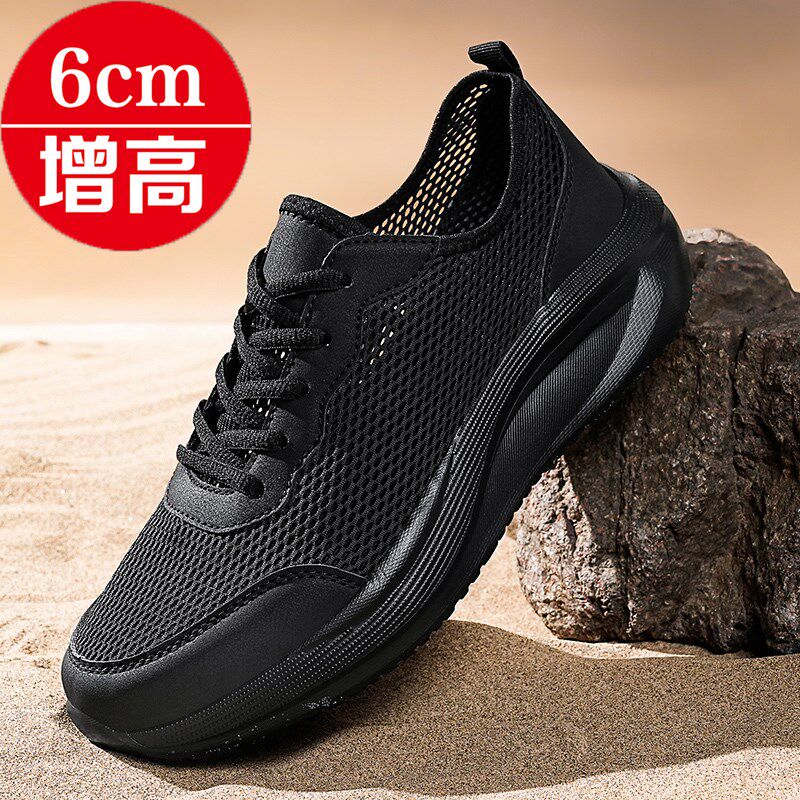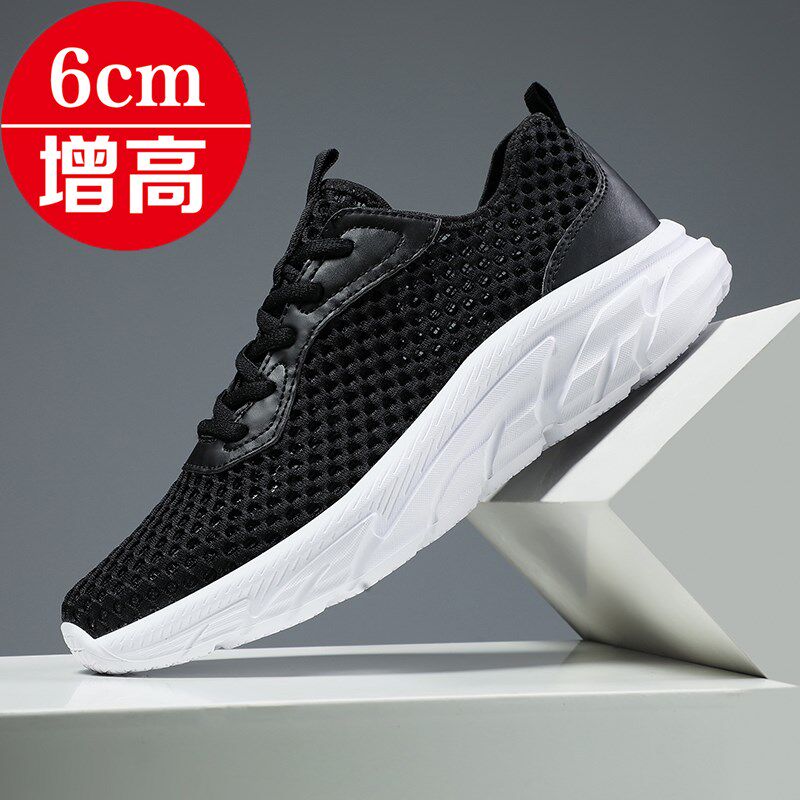 夏季内增高男鞋透气网面镂空薄款休闲运动鞋超轻便防臭跑步鞋网鞋