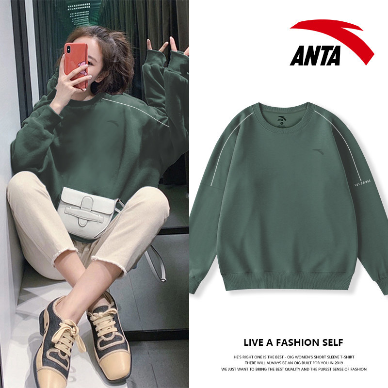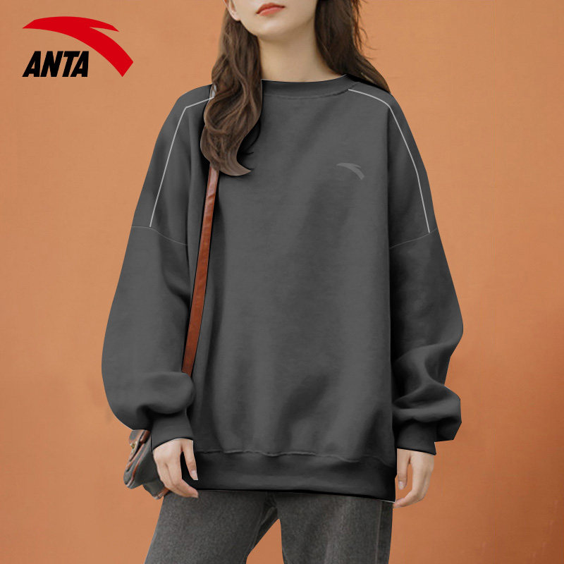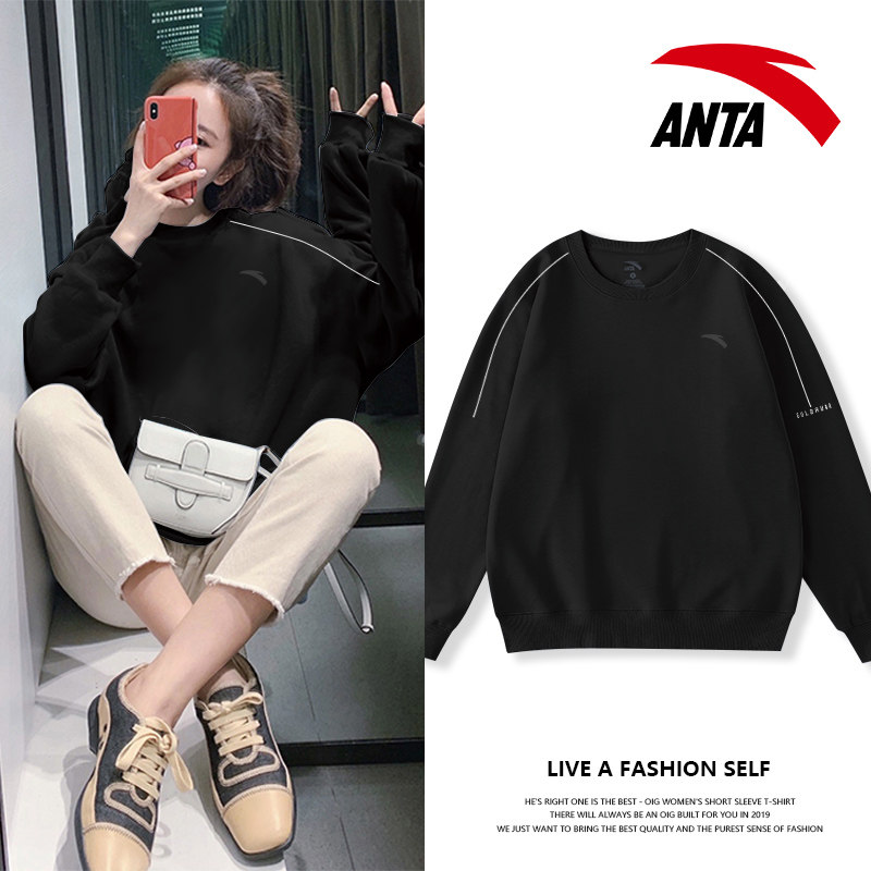 安踏圆领卫衣女2026新款爆款秋冬上衣加绒加厚外套秋冬款打底长袖