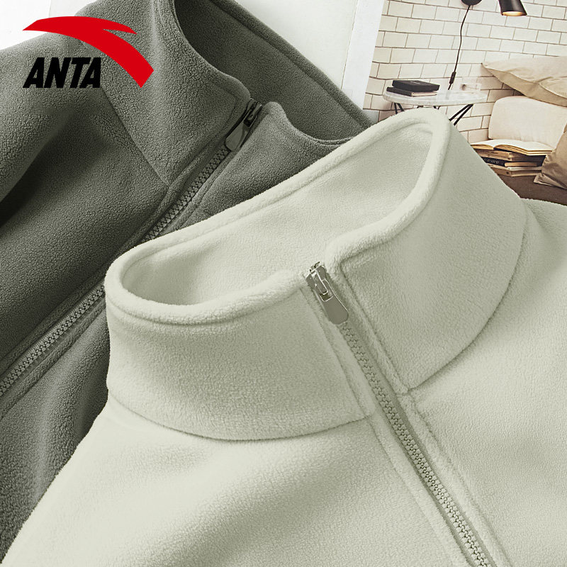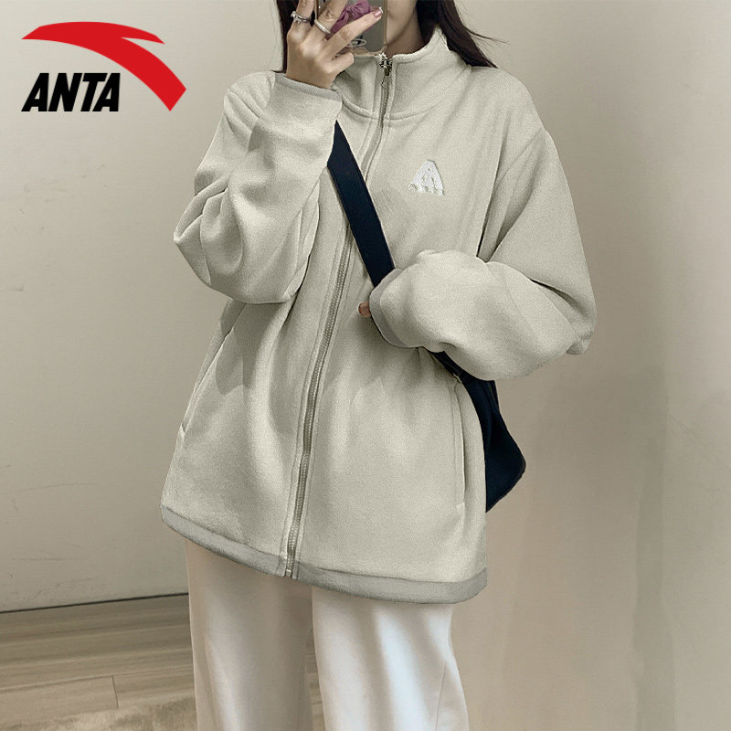 安踏火壳抓绒衣外套女冬季双面摇粒绒内胆加绒加厚保暖羊羔毛卫衣