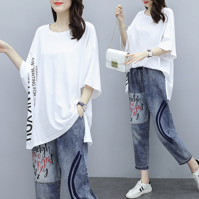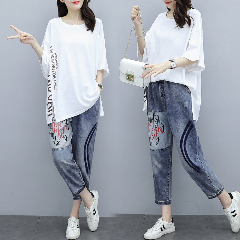 2026春夏新款韩版宽松显瘦时尚套装女休闲牛仔裤+T恤洋气两件套潮