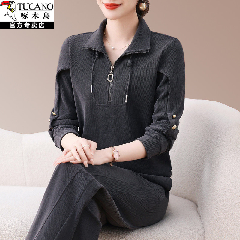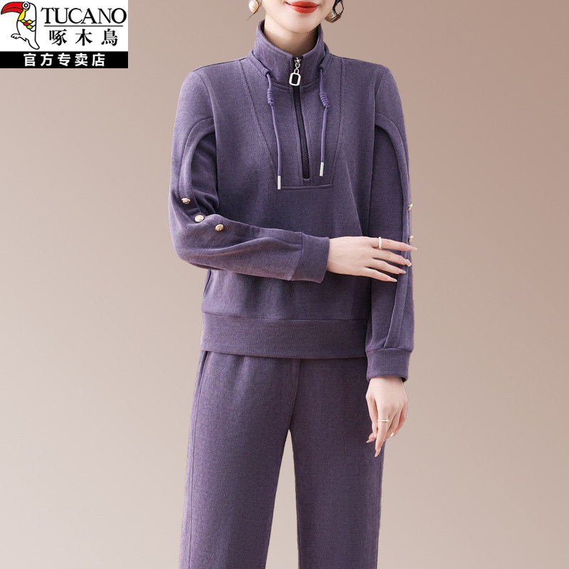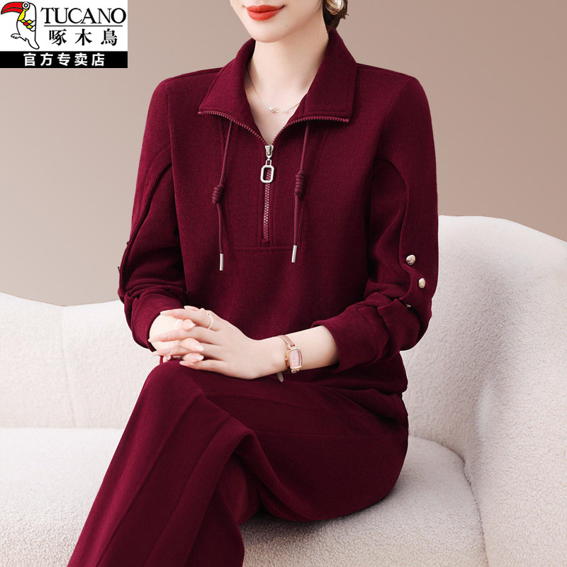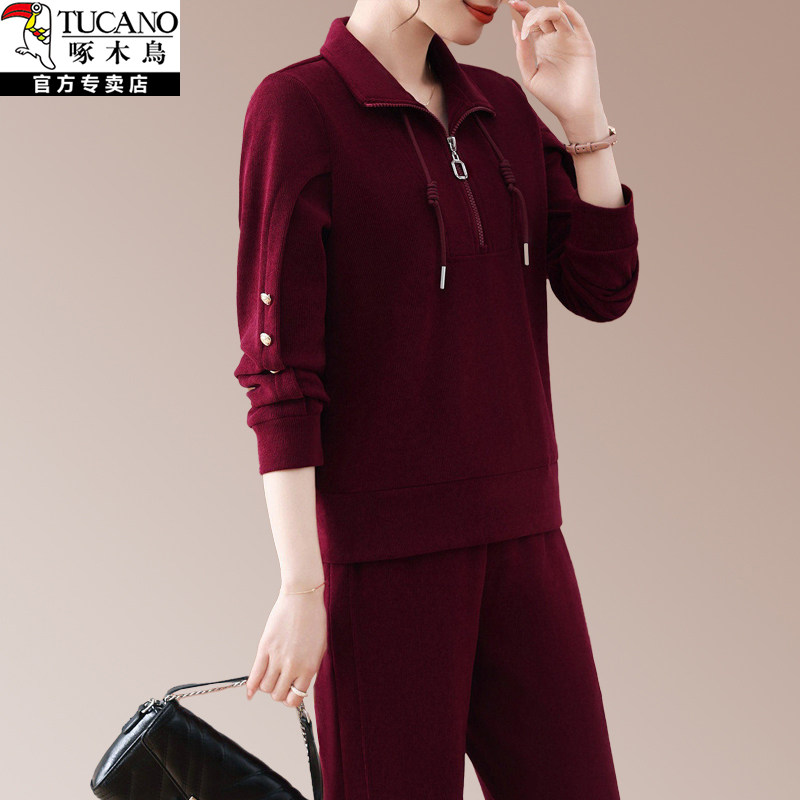 啄木鸟中年妈妈时髦卫衣运动套装春秋2026新款女士时尚休闲两件套