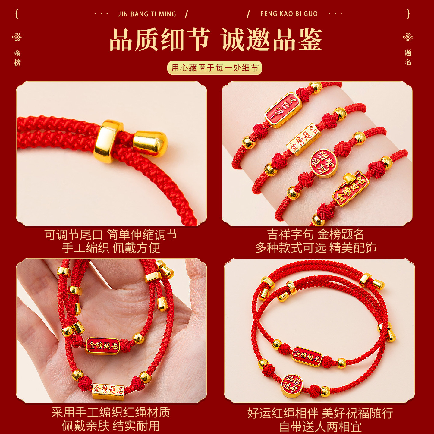 311线报网描述:优质红绳编织手绳 可调节手围 美好祝福寓意