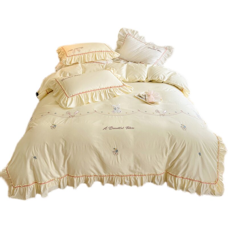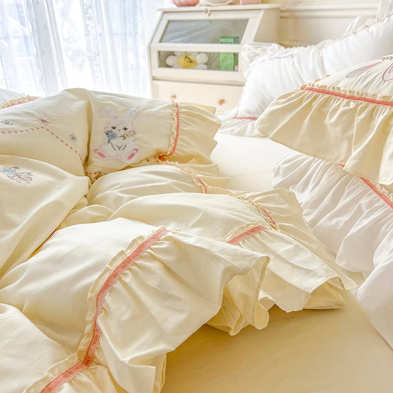 黄色四件套全棉纯棉女孩高级感小兔子儿童床上床单被套女儿房春夏
