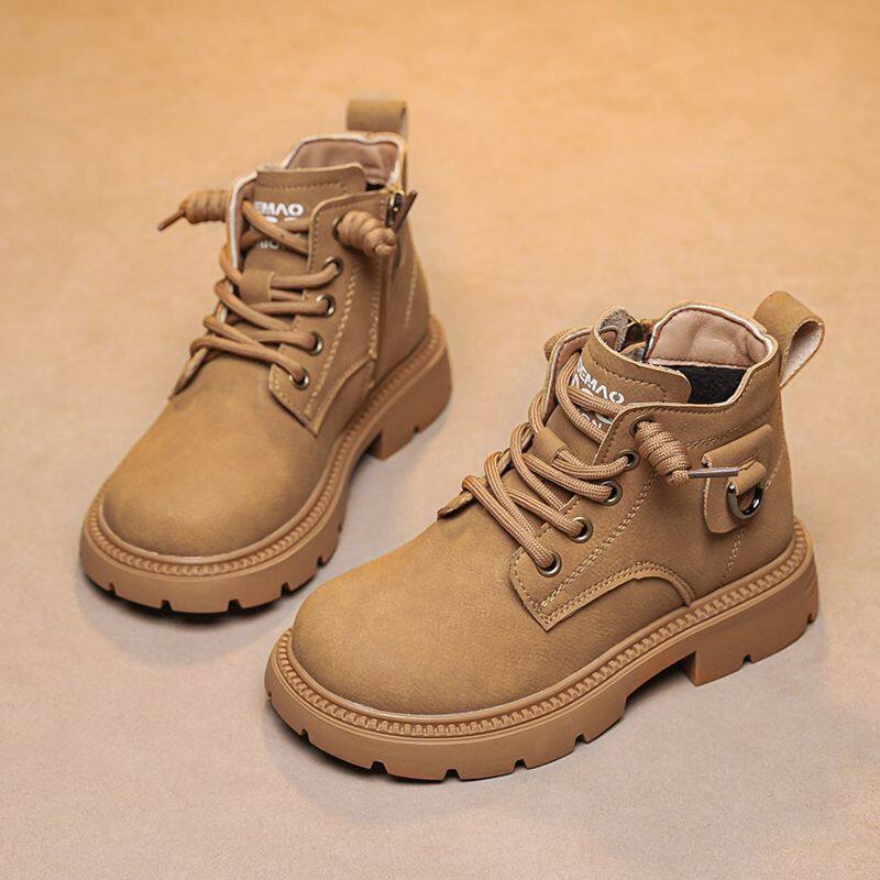 儿童靴子女童马丁靴2026秋冬新款皮靴冬季加绒加厚小黄靴男童短靴