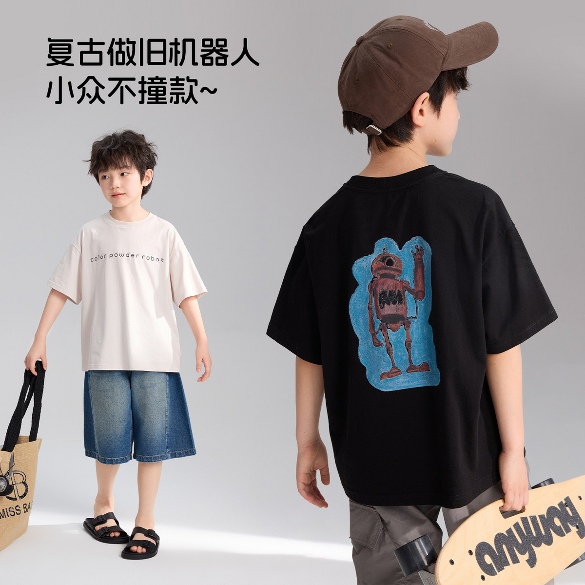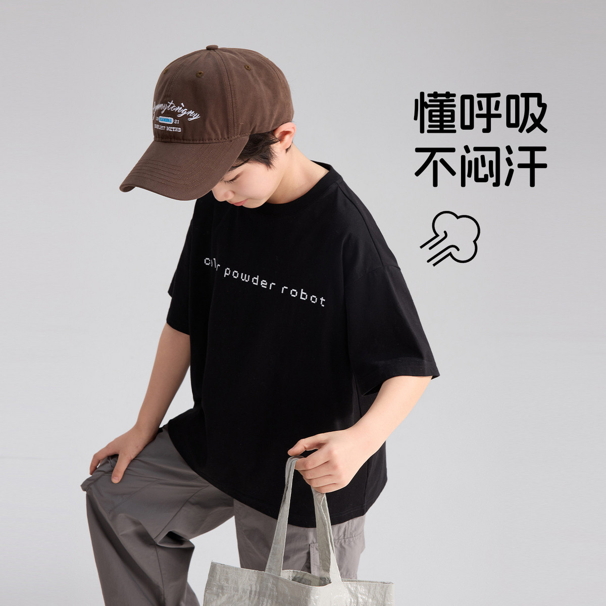 布丁哈鲁夏装男童童装百搭上衣2026夏季新款儿童潮酷透气短袖T恤