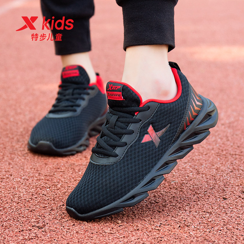 特步官方正品童鞋学生运动鞋秋季新款儿童网面透气轻便黑色跑步鞋