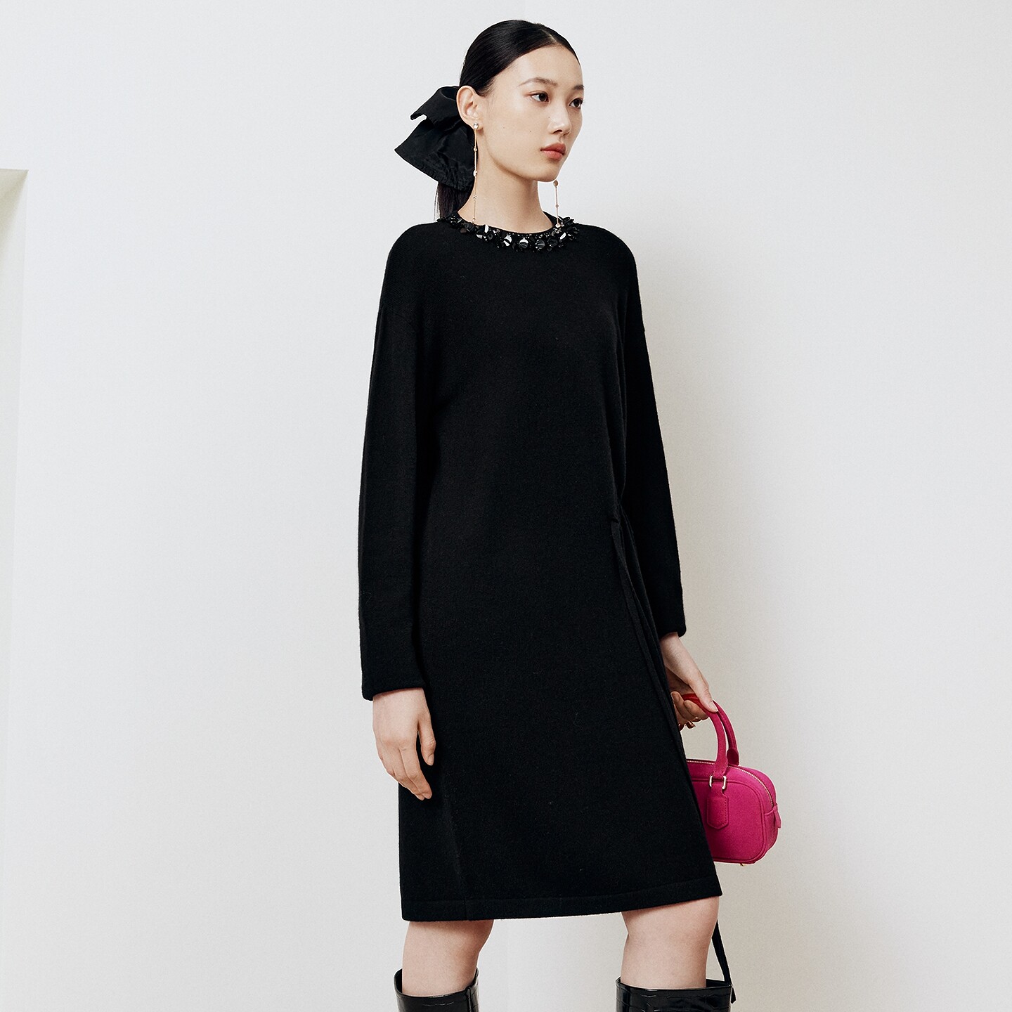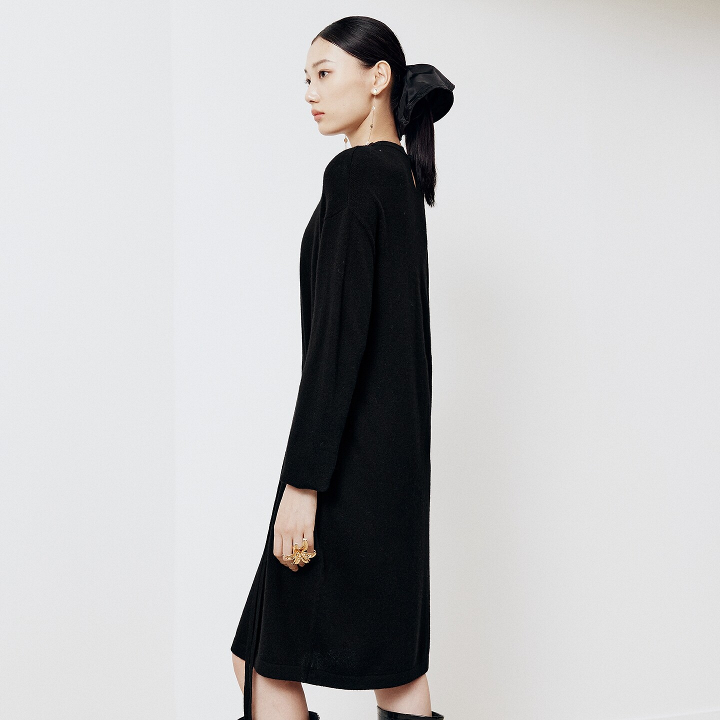 firststation时尚百搭圆领收腰长袖针织连衣裙女25冬新款9420A