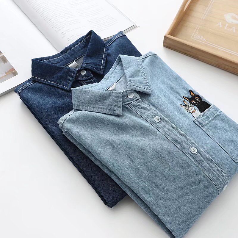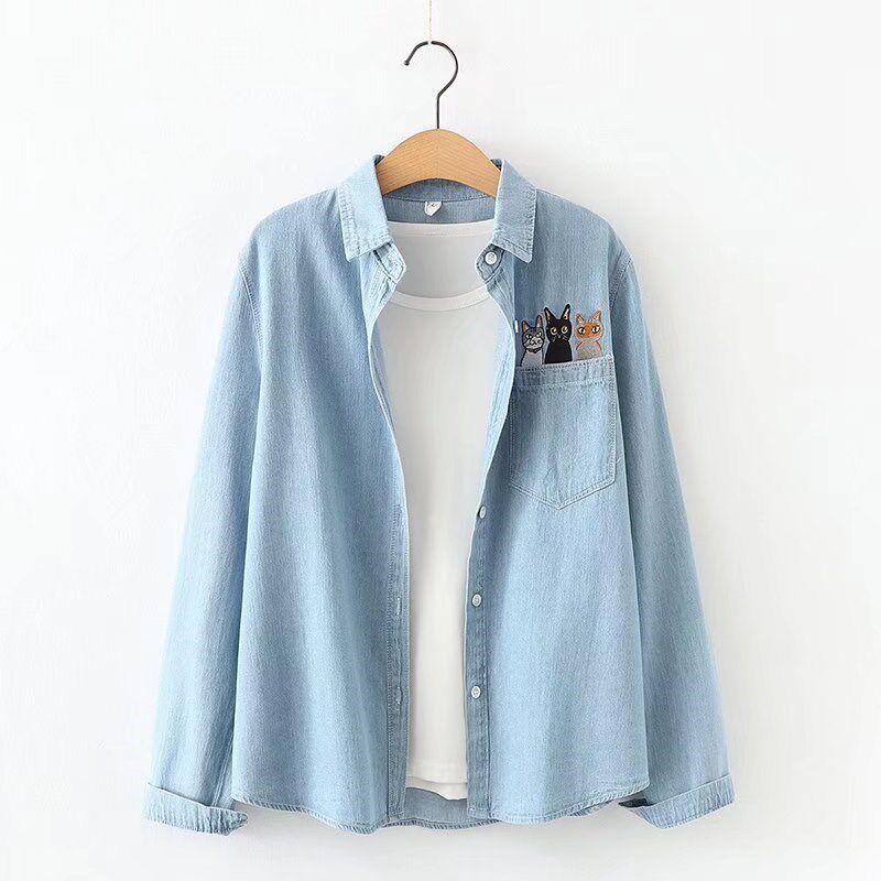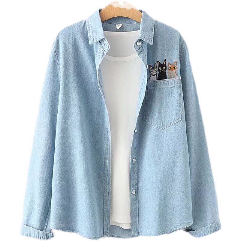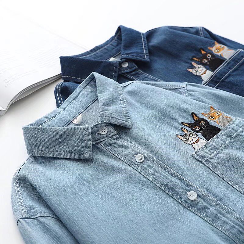 少女春秋牛仔衬衫外套春装新款初中高中学生宽松休闲甜美薄款上衣
