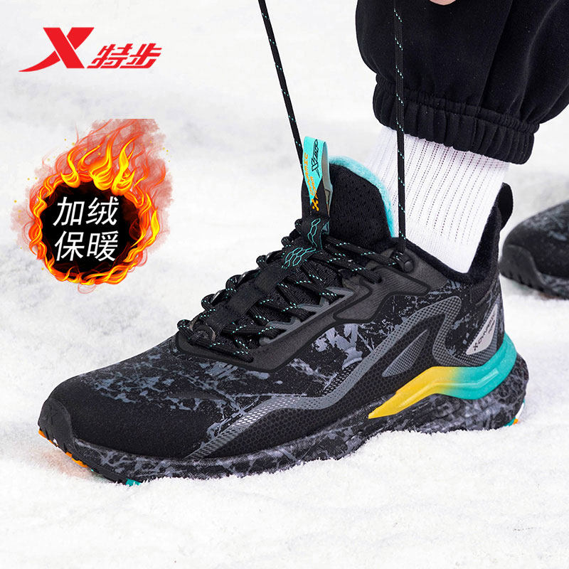 特步男鞋动力巢跑步鞋春季加绒保暖棉鞋官方正品跑鞋皮面运动鞋男