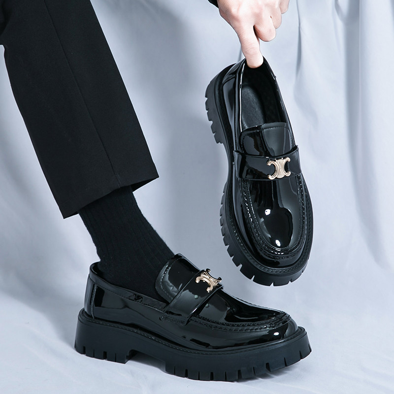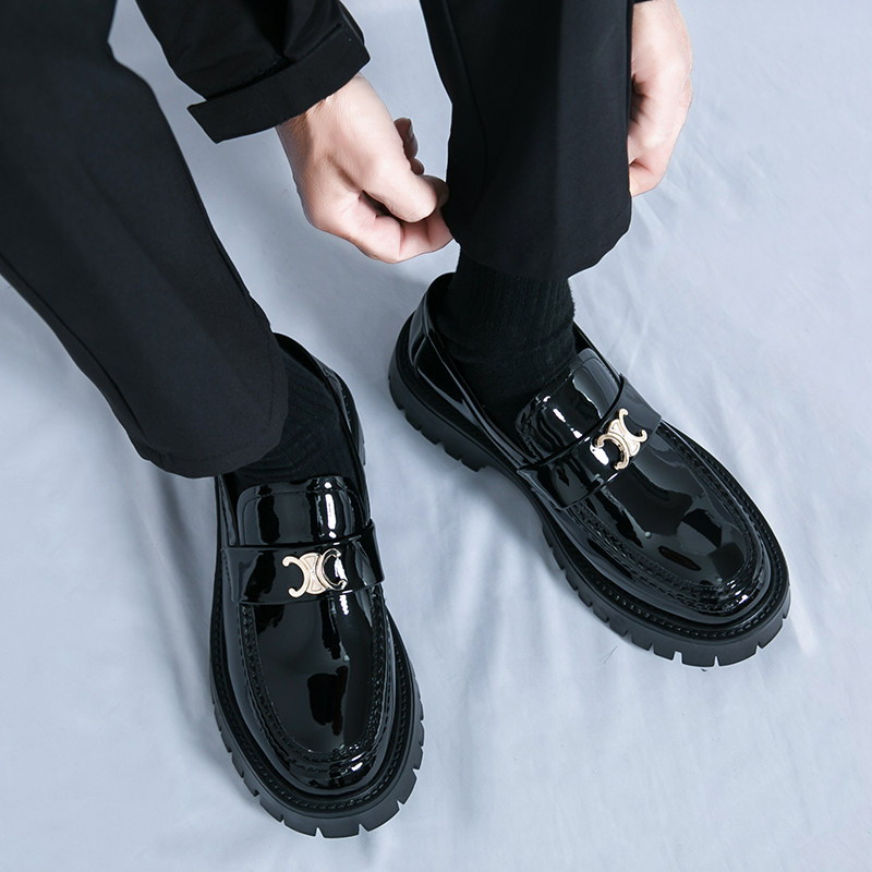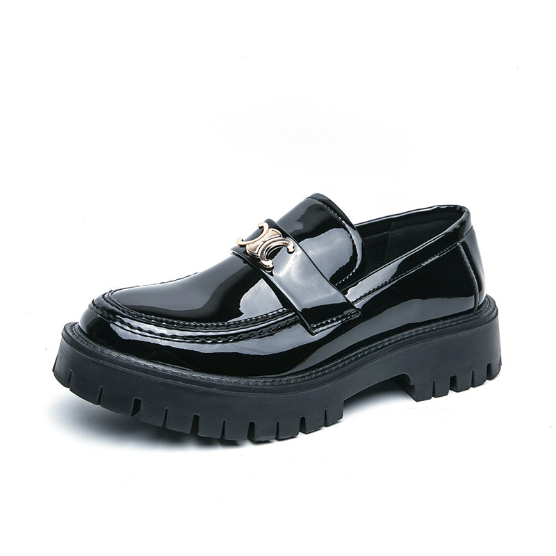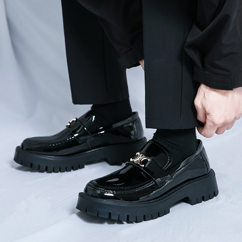 乐福鞋男潮厚底增高英伦风高级感亮面休闲皮鞋一脚蹬懒人黑色男鞋