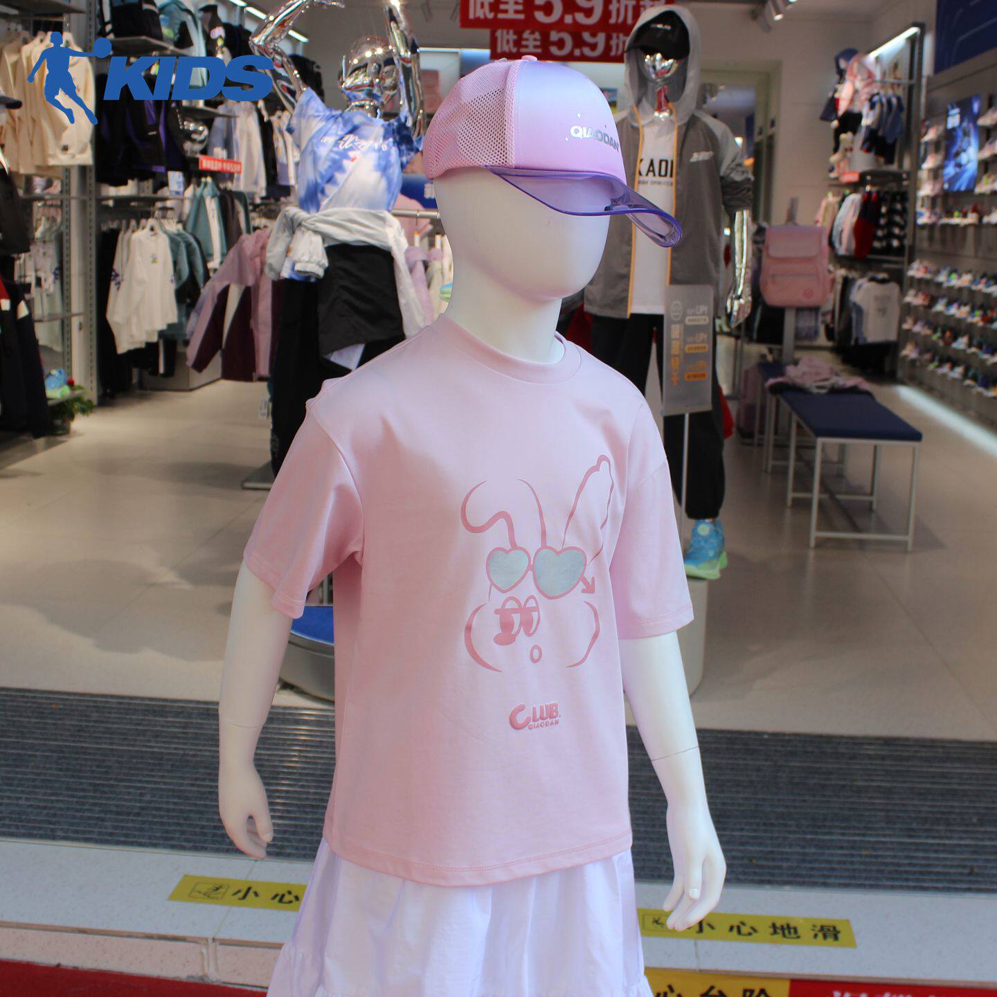 乔丹儿童2026夏季新款女大童短袖舒适小兔子圆领T恤TDDHSB262119