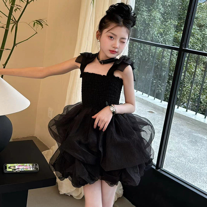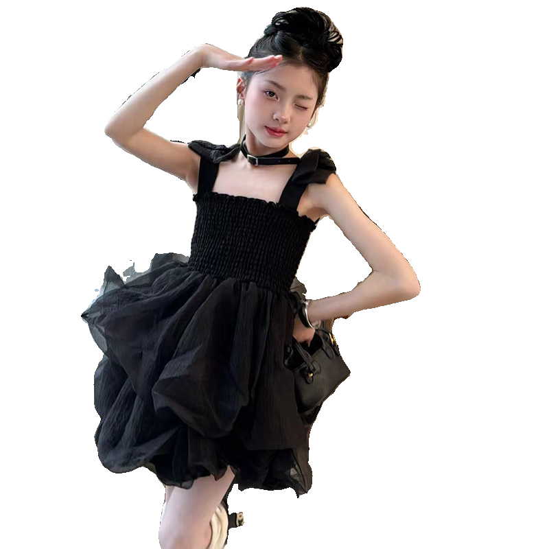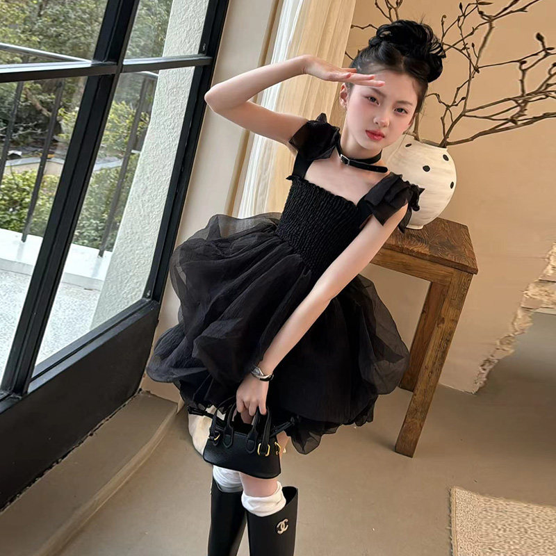 女童连衣裙3宝宝夏季吊带裙4儿童公主黑纱裙洋气5四7-8岁女孩裙子