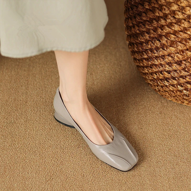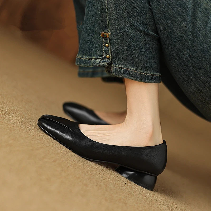 2026新款简约通勤单鞋夏季透气女鞋方头百搭浅口一脚蹬粗跟妈妈鞋