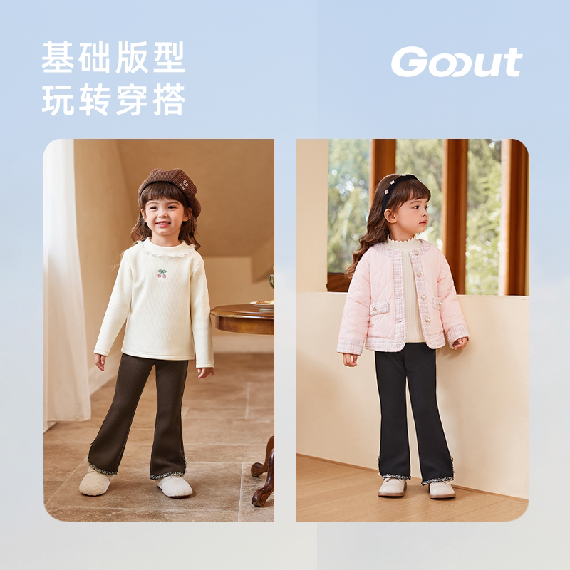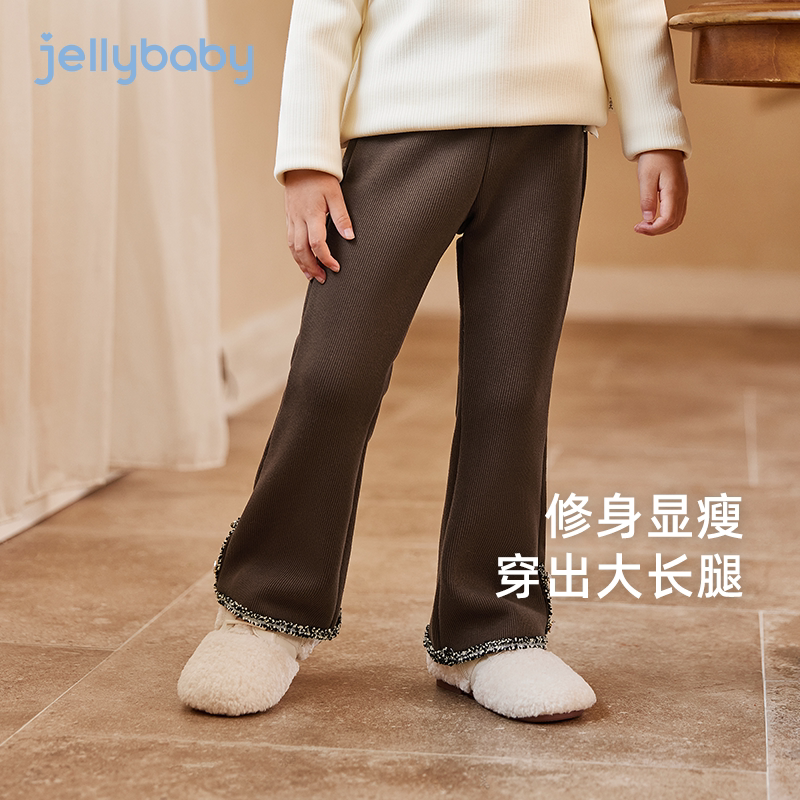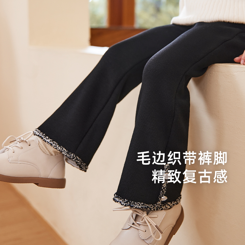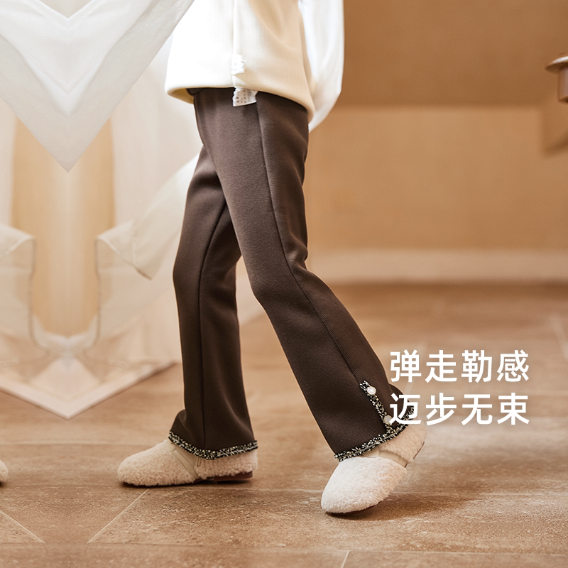 女童春秋休闲裤微喇复古儿童深秋加绒花边长裤薄绒小宝宝冬装裤子