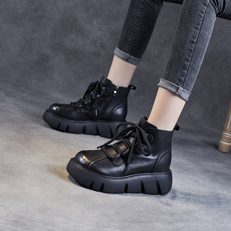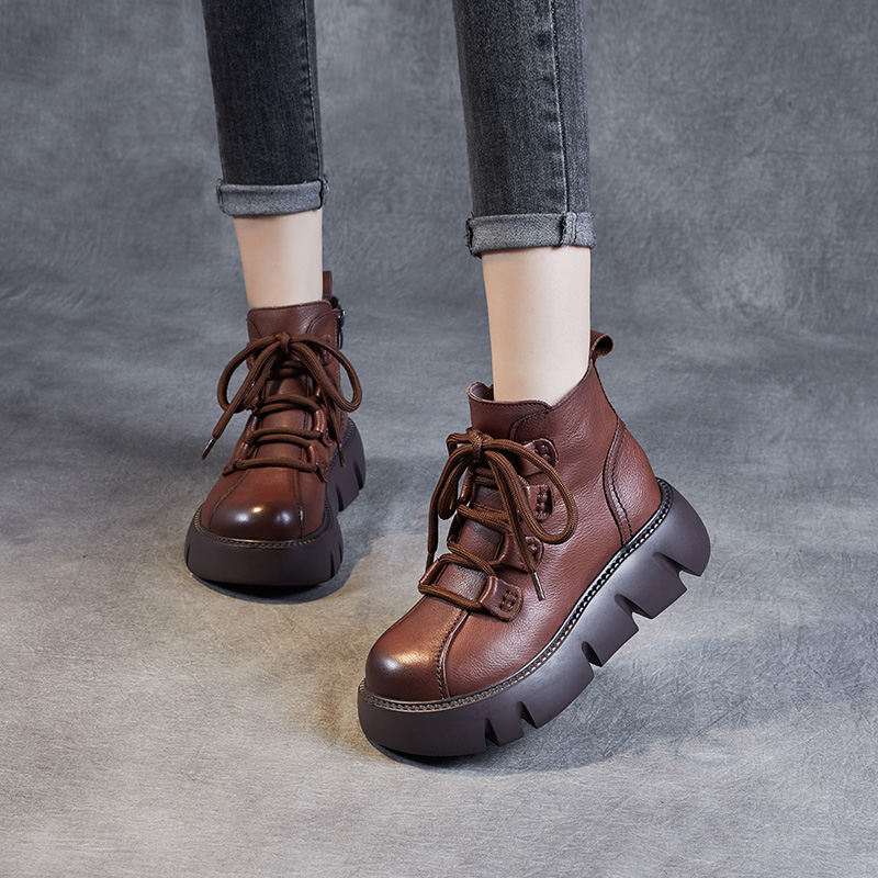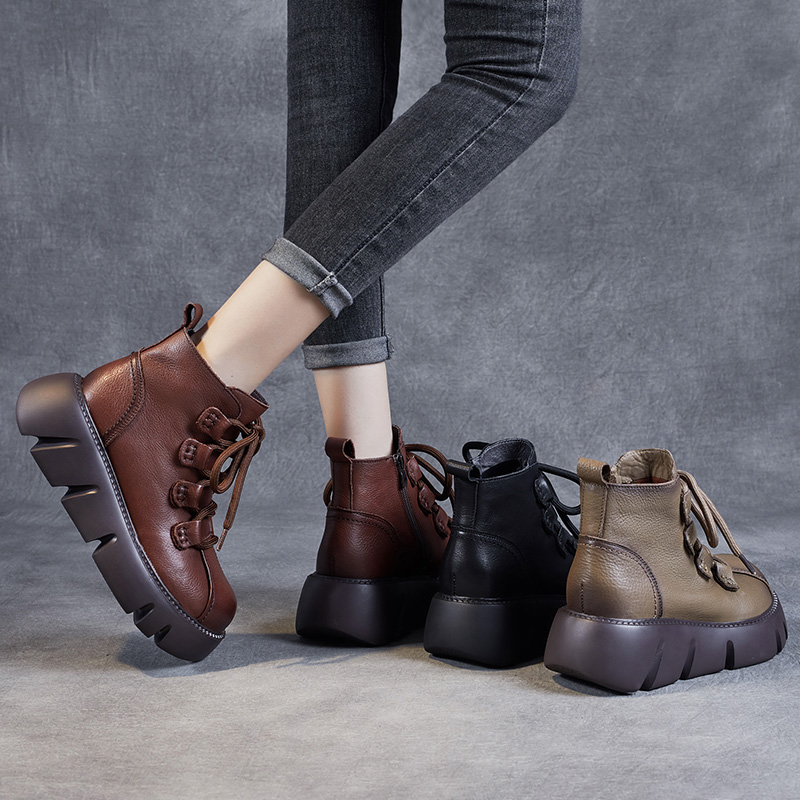 头层牛皮马丁靴女2025秋冬季真皮轻便高帮棉鞋复古松糕厚底短靴子