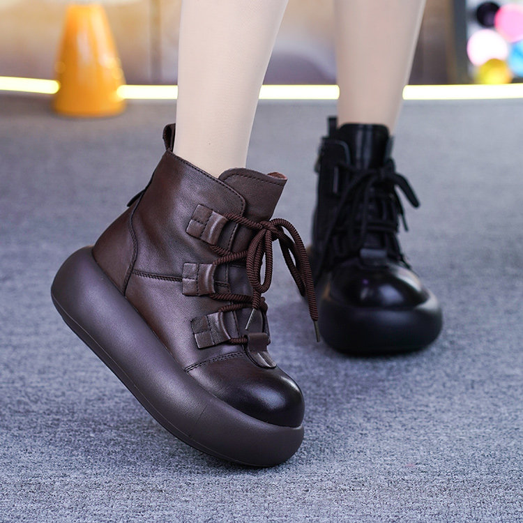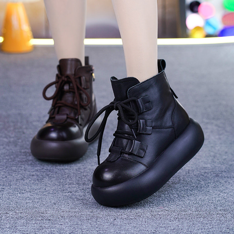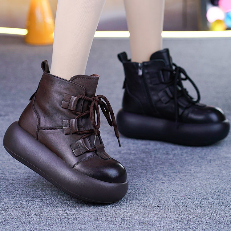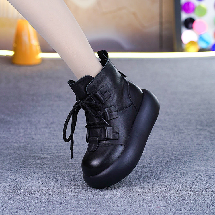 真皮加绒厚底马丁靴女冬季新款头层牛皮复古松糕底保暖马丁靴棉靴