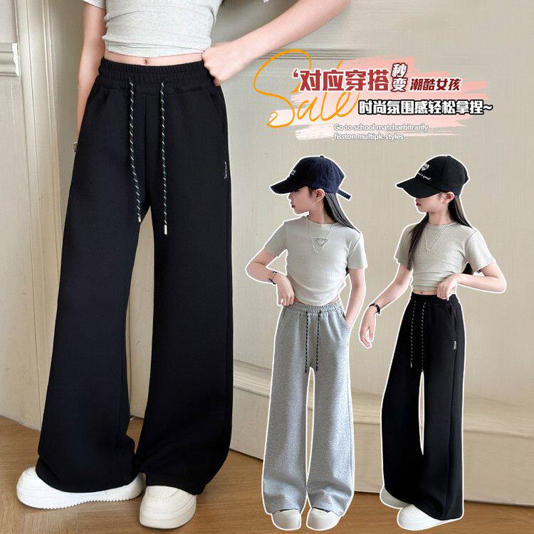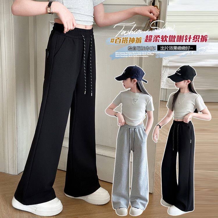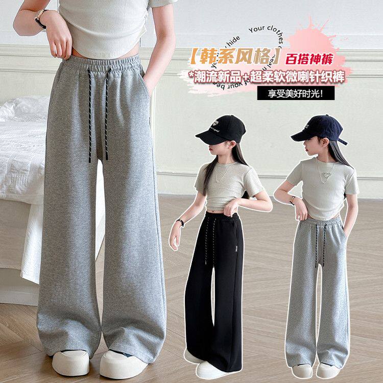 女童微喇运动裤春装2026新款喇叭裤儿童直筒裤子女大童初中生卫裤