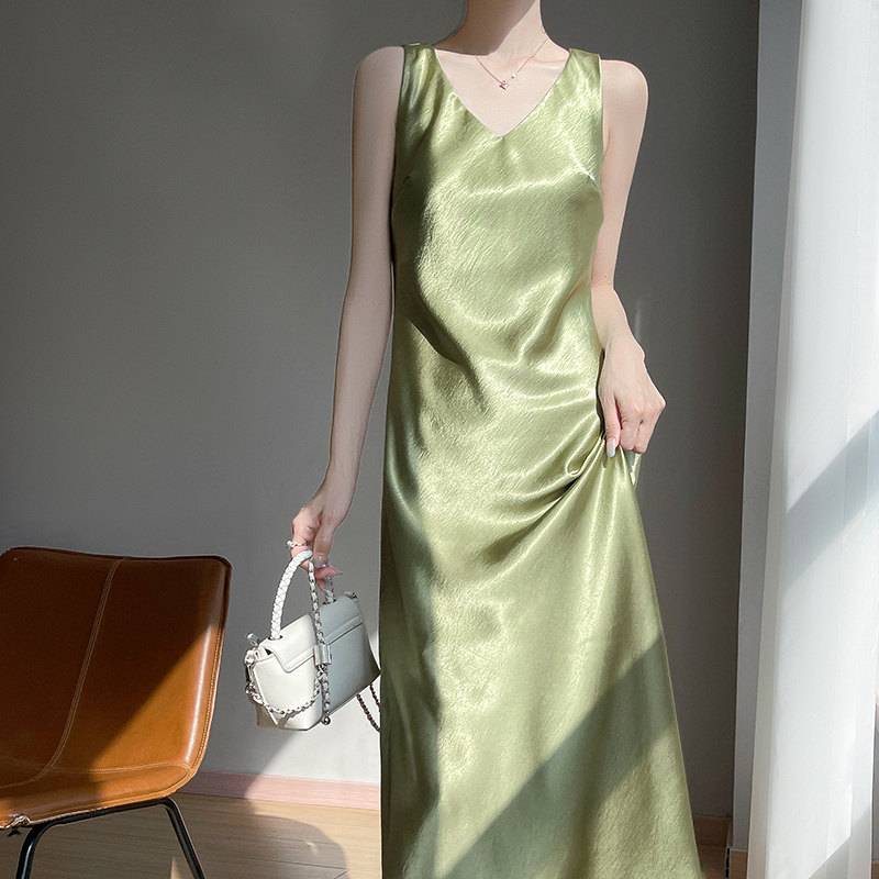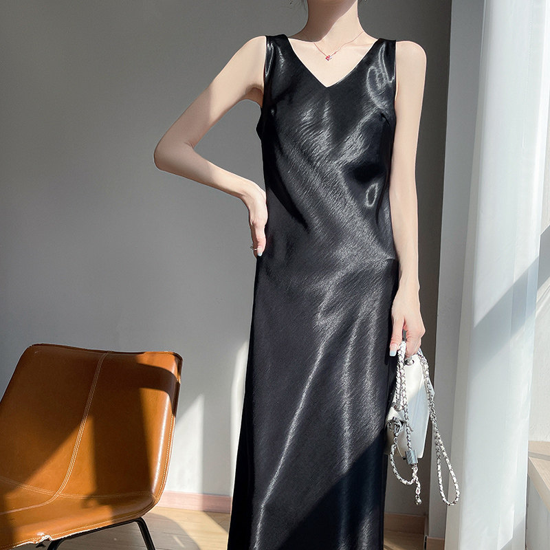 法式吊带连衣裙女夏季高端醋酸缎面无袖内搭名媛气质修身显瘦长裙