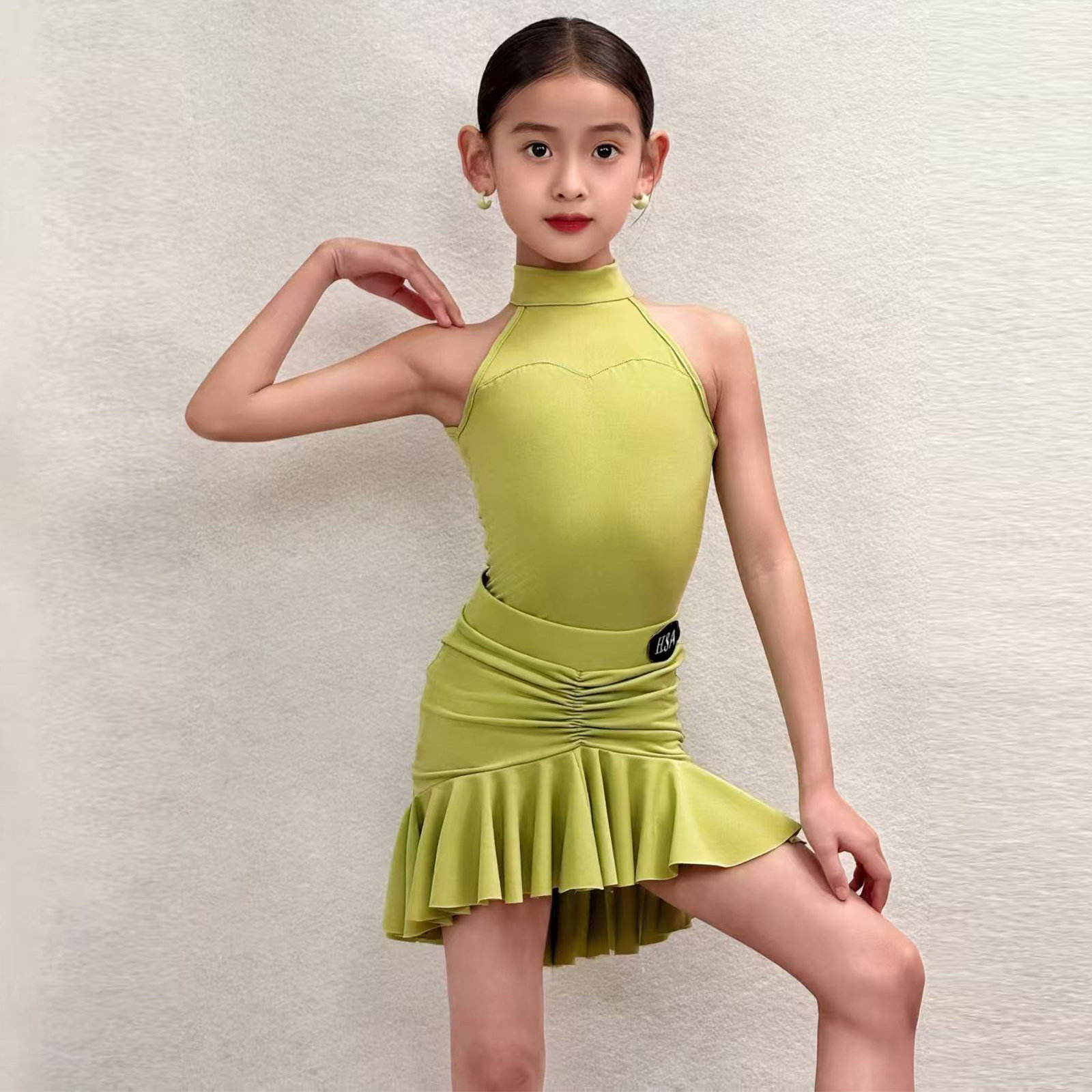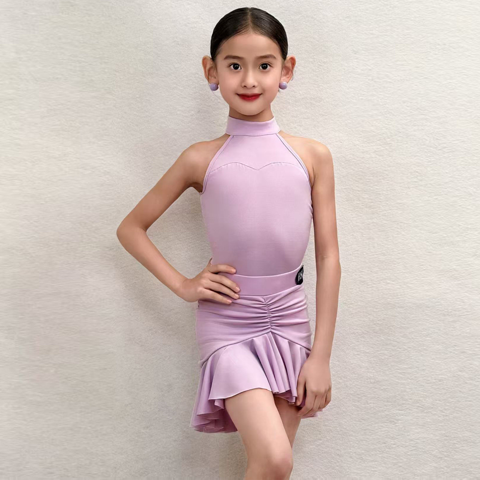 夏季新款拉丁舞服女童无袖挂脖高级感练功服少儿专业比赛演出服装