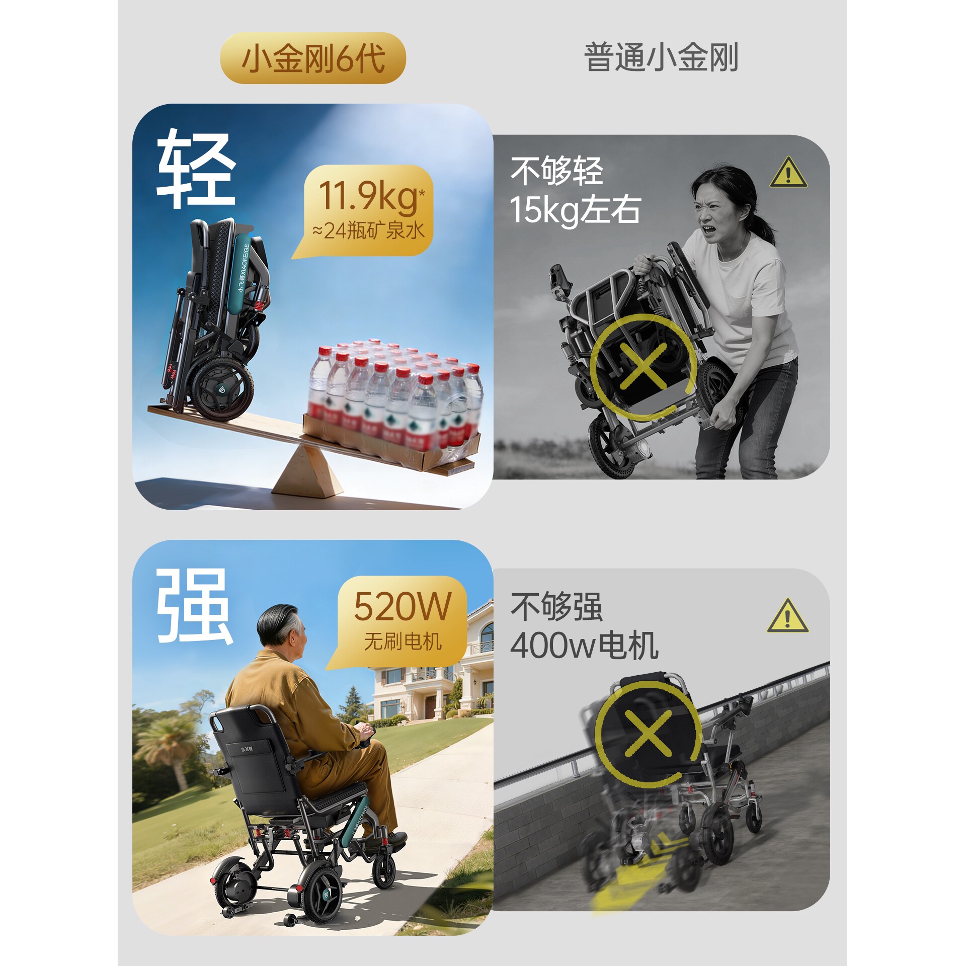 护卫神小金刚便携电动轮椅轻便折叠小型智能全自动老人专用代步车