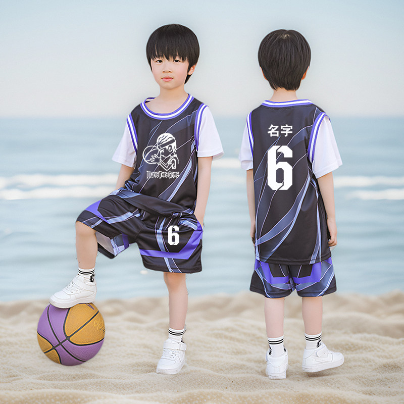 儿童假两件篮球服套装女孩绿色球衣定制男童小学生比赛服班服定制