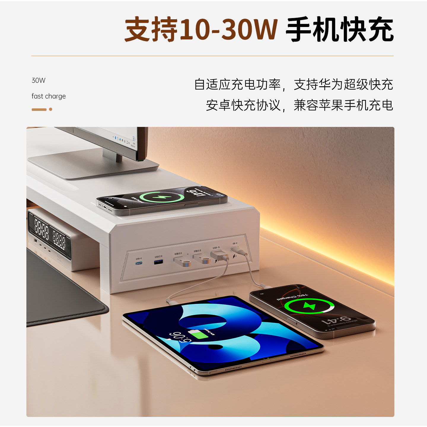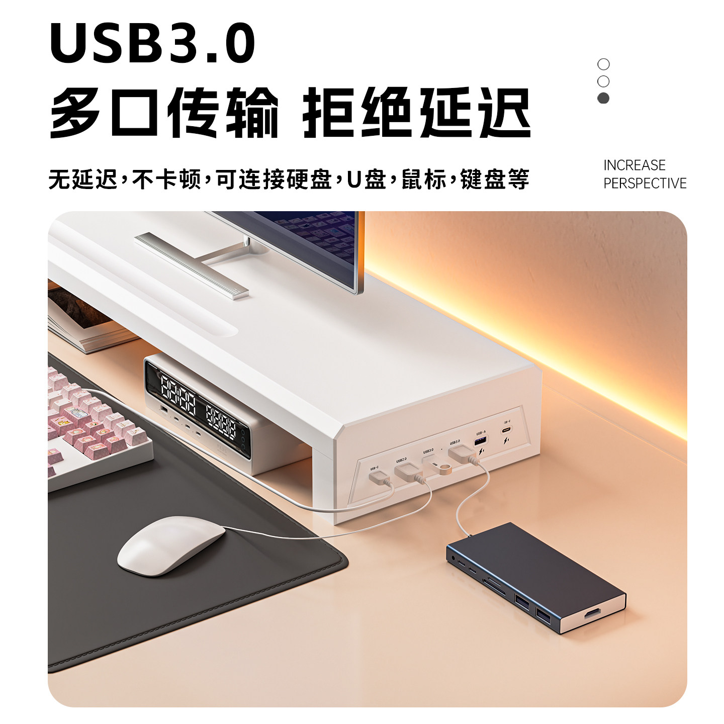 311线报网描述:增高护颈 桌面收纳 USB3.0扩展 手机充电