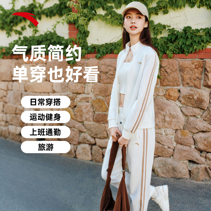 安踏遛弯运动套装女夏季新款开衫外套休闲长裤跑步运动妈妈两件套