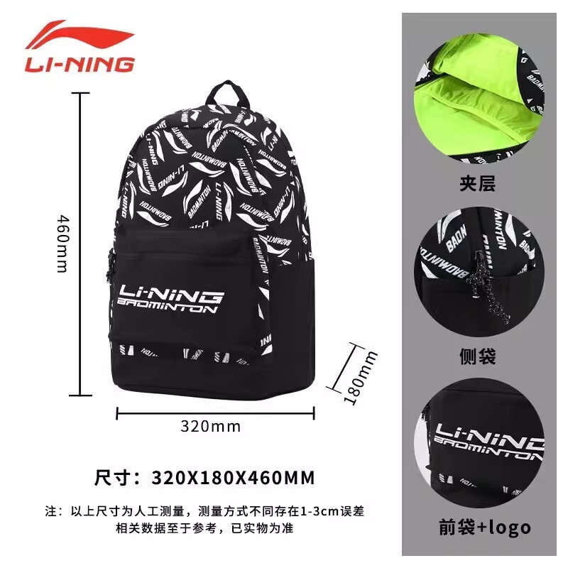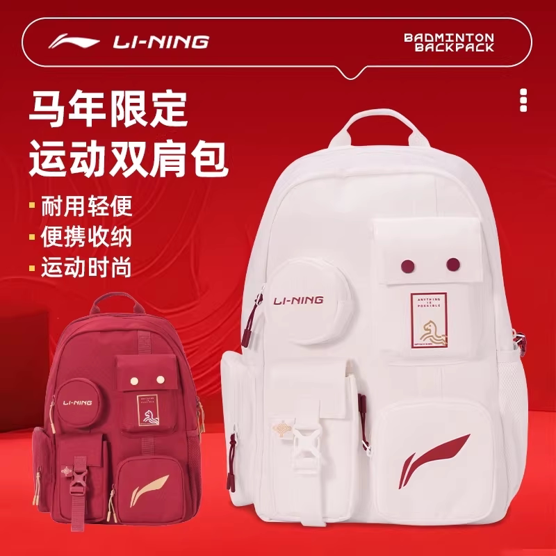 李宁双肩包新款羽毛球包男女款旅行包大容量休闲运动背包多功能