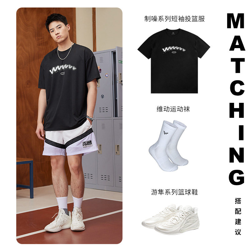 维动制噪投篮服男美式篮球速干短袖学生运动训练T恤夏网眼青少年V